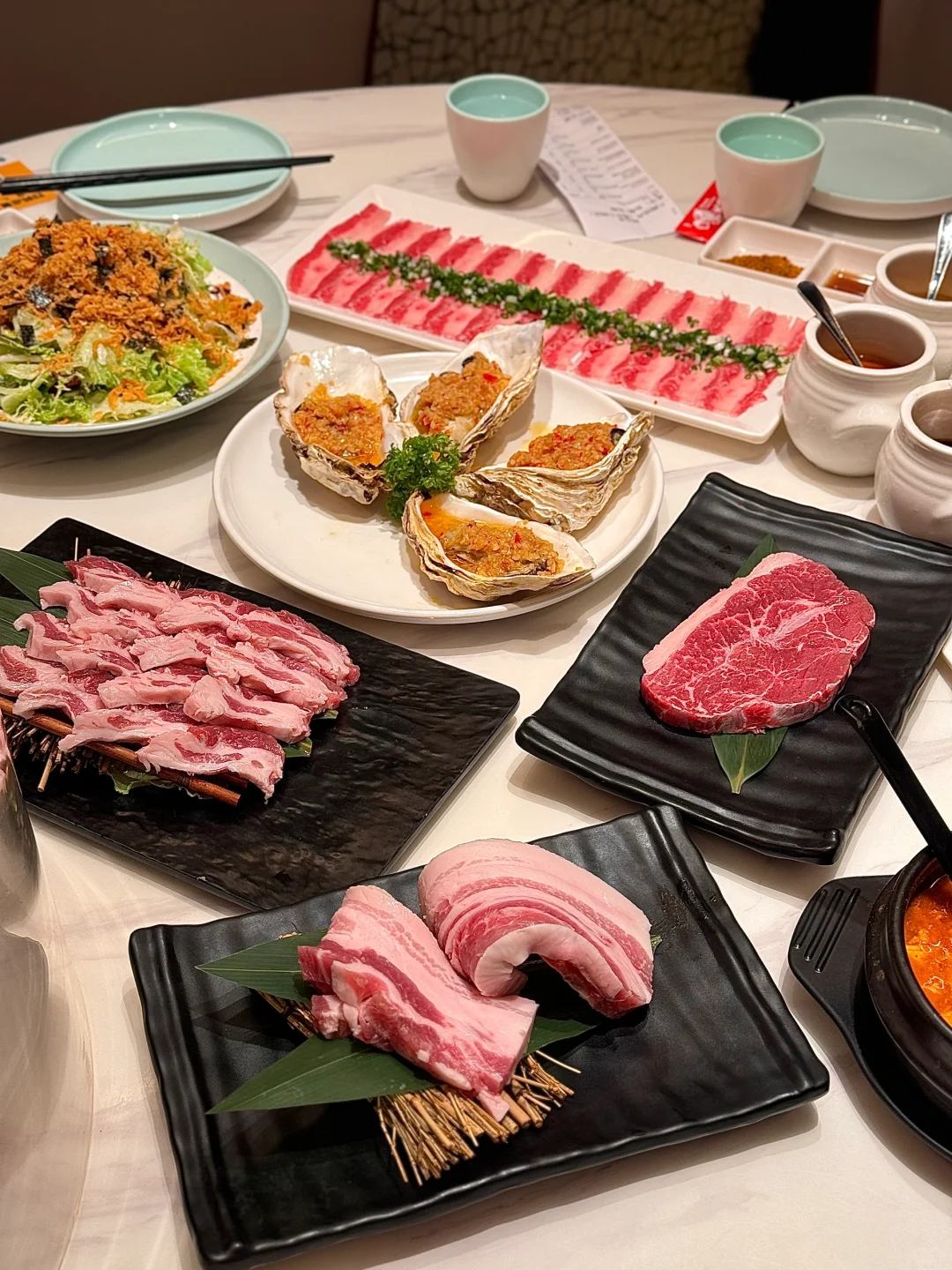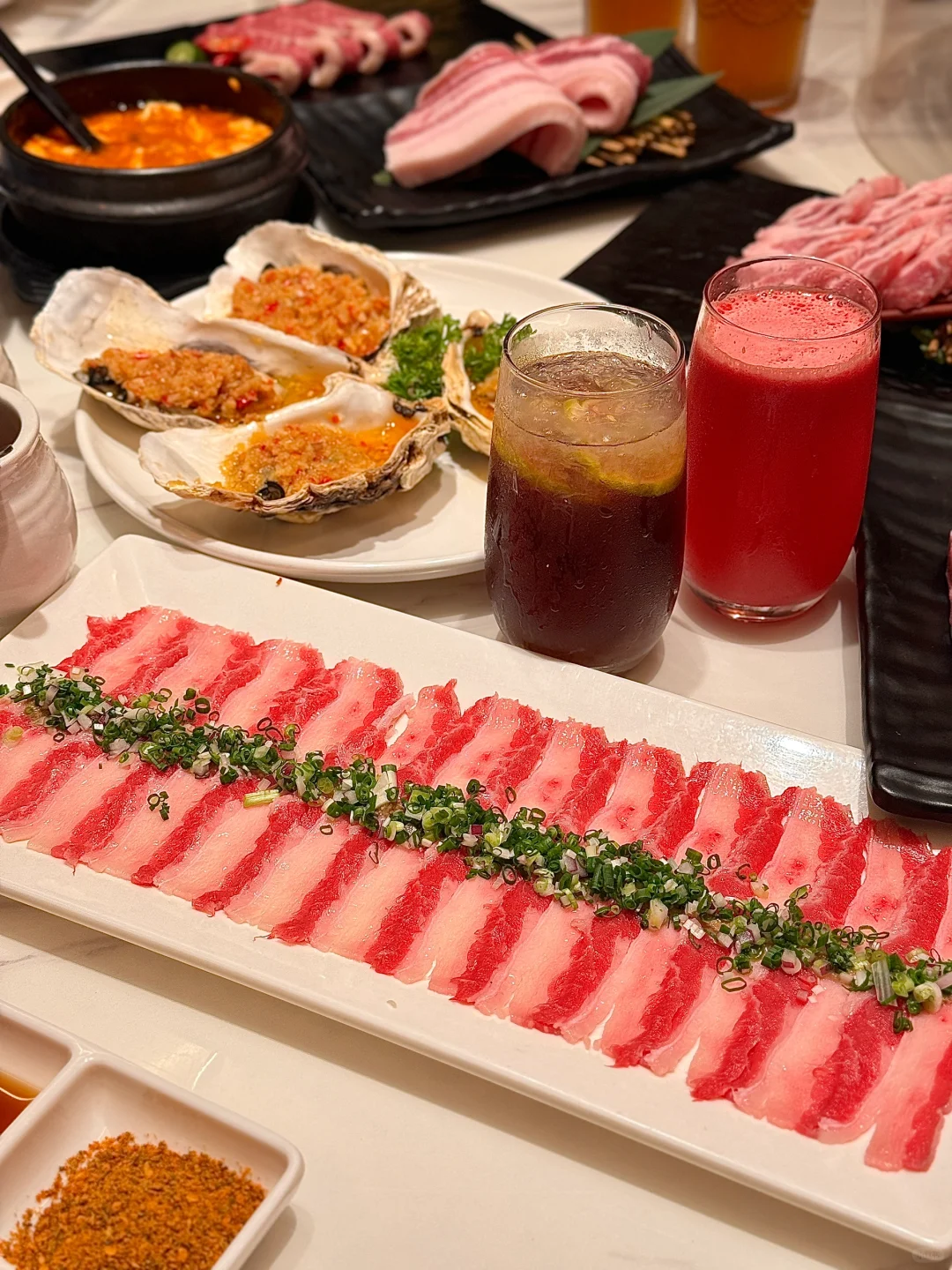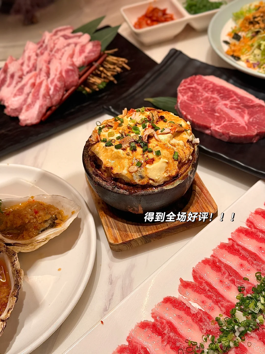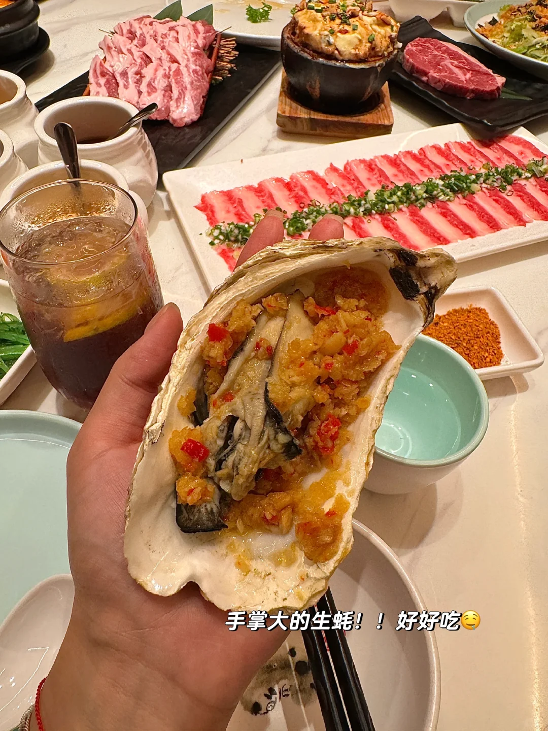 生蚝🦪、猪五花🐖、牛五花🐂……真的好吃!!!生蚝个头超大的…肉质也超厚实!还很新鲜🤤 会有专门的人根据不同肉质烤的时间也不一样。可以很好的保留肉质的美味😋(关键是烤盘还带罩子的那种,简直不要太贴心了吧) 店内的氛围也很舒服!聚餐或者个人来都能吃的很开心🥳