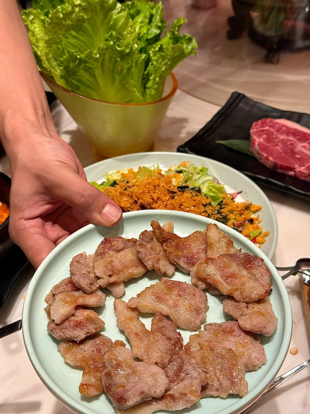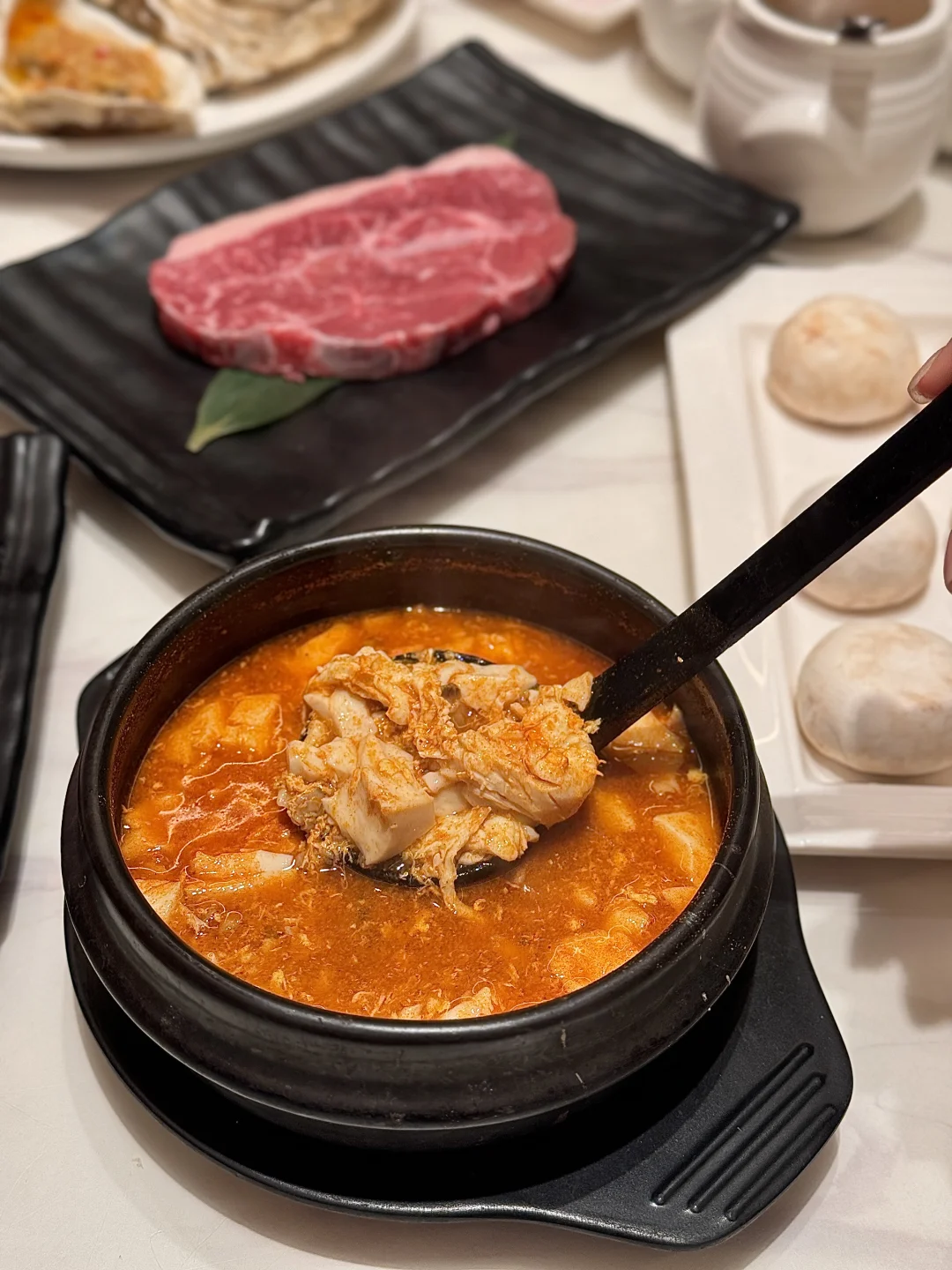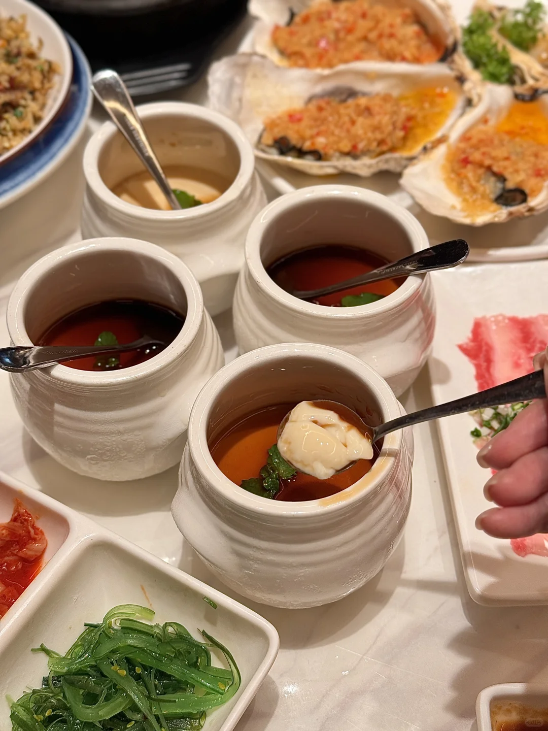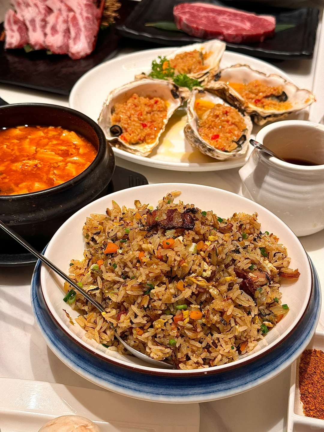 生蚝🦪、猪五花🐖、牛五花🐂……真的好吃!!!生蚝个头超大的…肉质也超厚实!还很新鲜🤤 会有专门的人根据不同肉质烤的时间也不一样。可以很好的保留肉质的美味😋(关键是烤盘还带罩子的那种,简直不要太贴心了吧) 店内的氛围也很舒服!聚餐或者个人来都能吃的很开心🥳