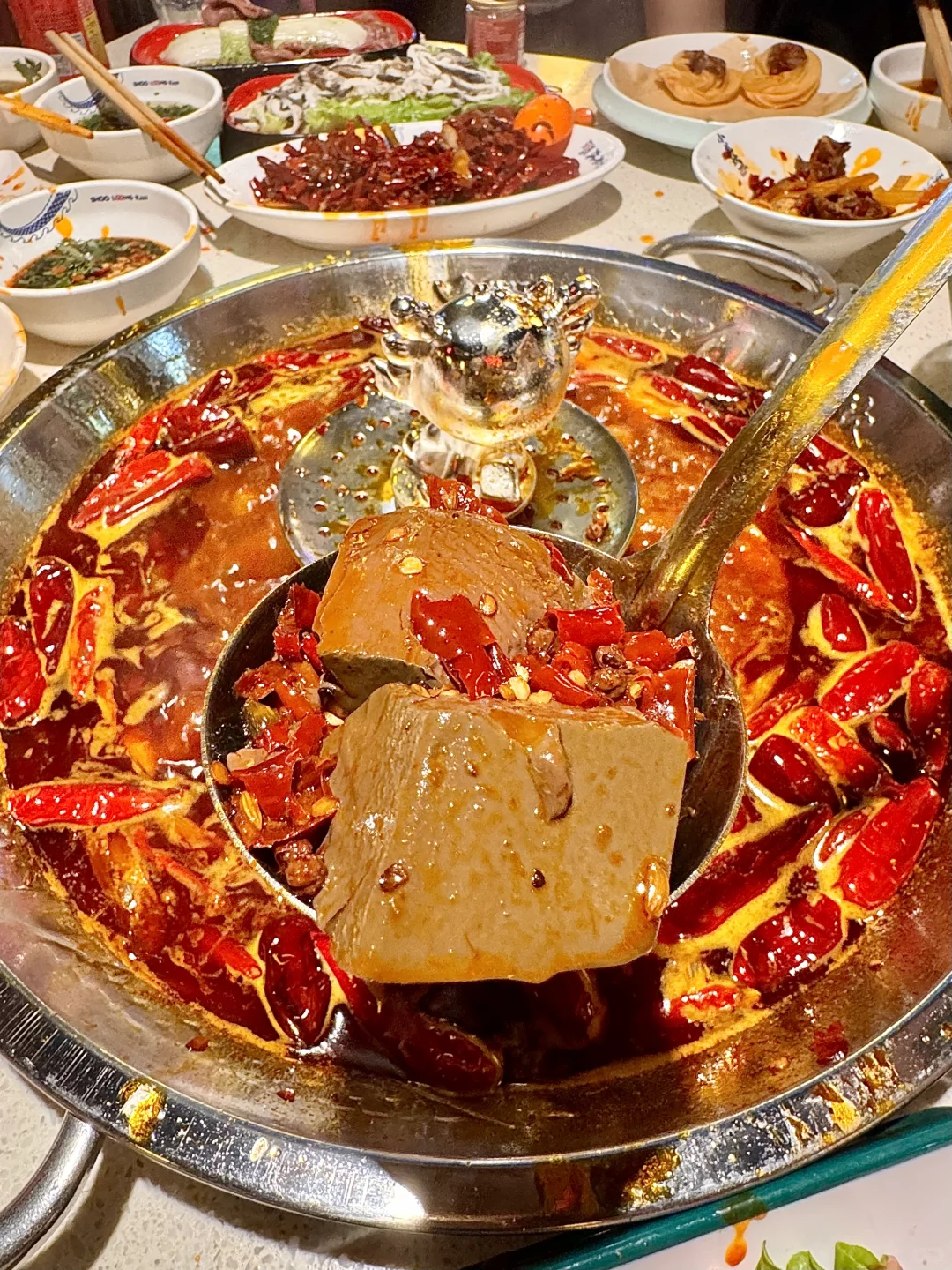 中山开好多年的老牌火锅咯 降温了过来炫一顿 还是一如既往滴好吃呀! 尤其是他家这个🔥天府酵藏锅底已经next level了 整整四斤油一斤料啊!!香得嘞~~~ 全辣锅真的jeng🤤蘸鞋底都嘎嘎好吃……