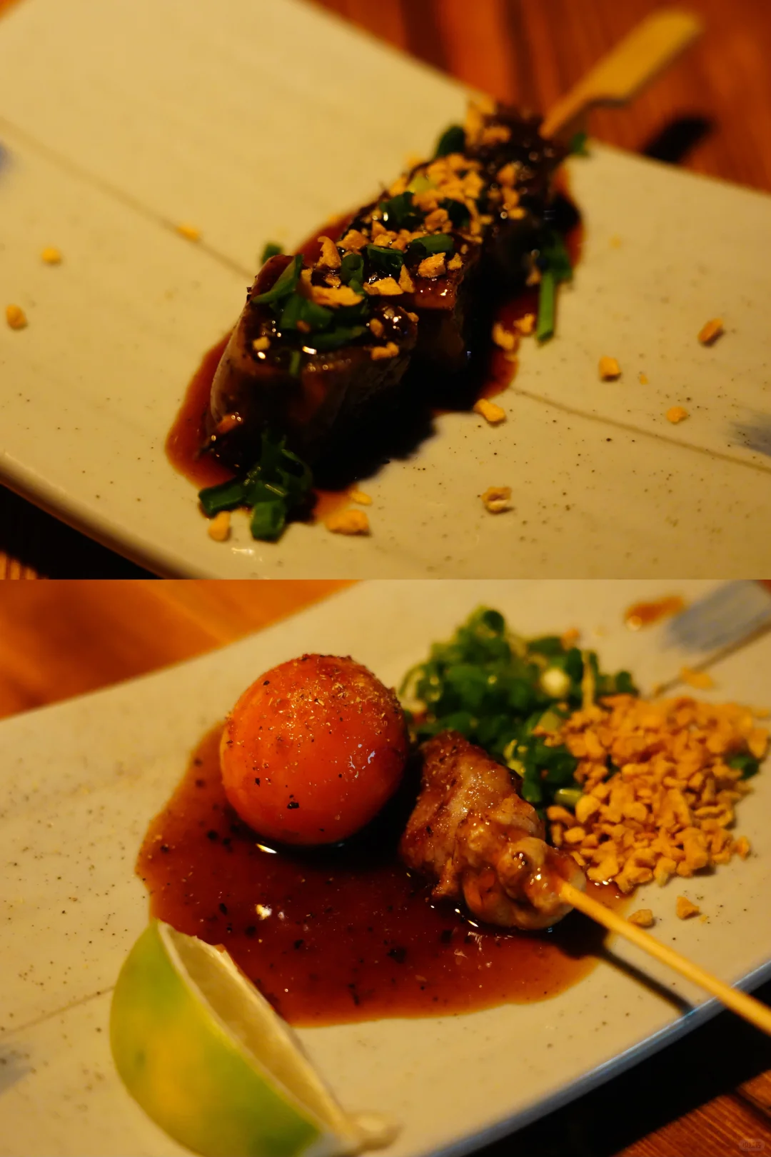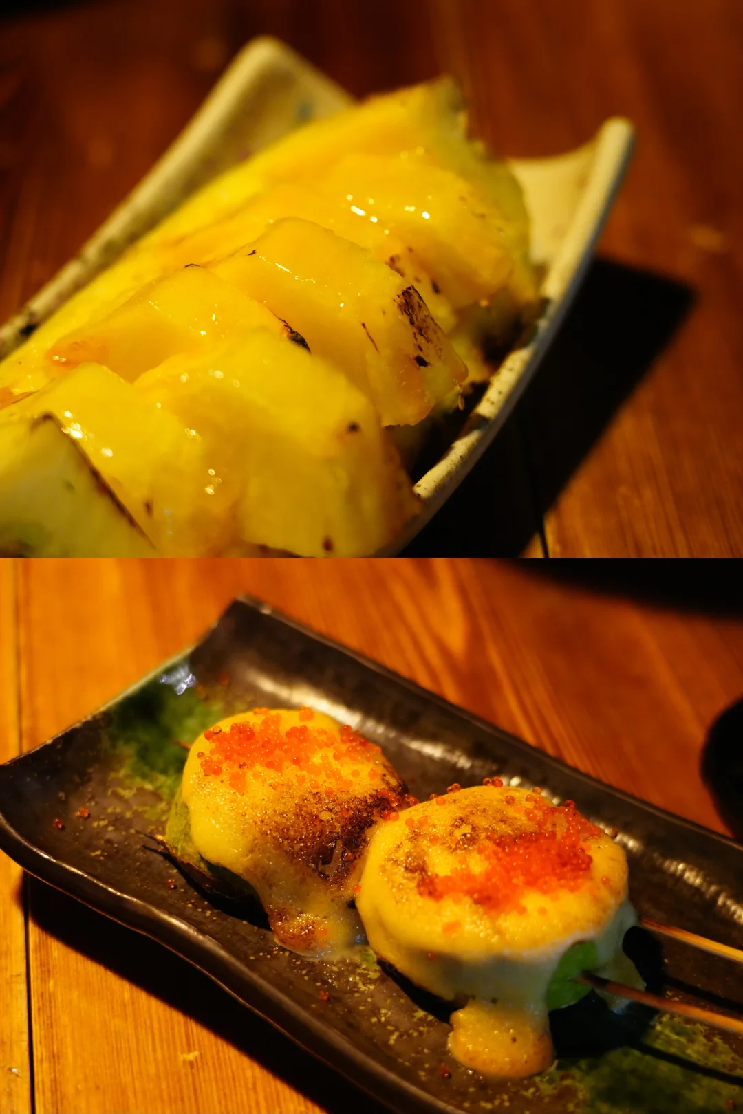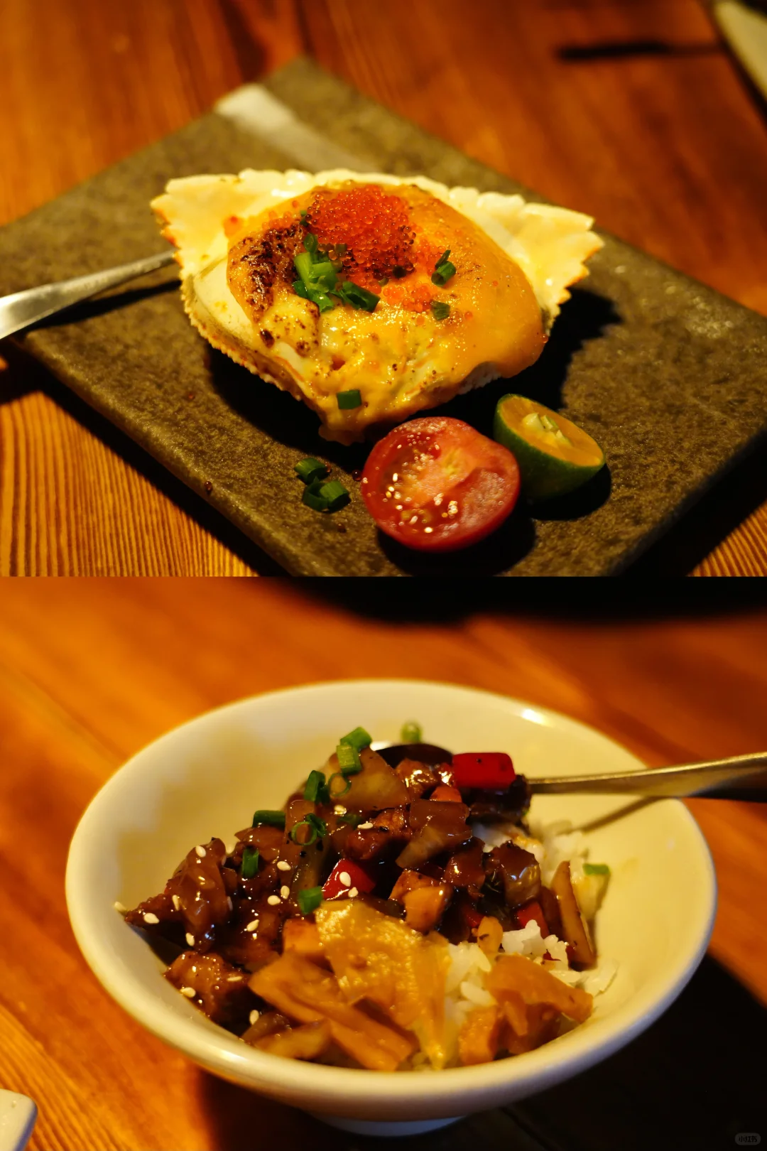 最有名的是烤鸽子系列,不知道现在还要不要预约,直接点上了战斧鸽腿,脆皮多汁,很好的开头。把烧鸟都放在一起说说,确实好吃的,但牛肉系列有些偏老,不过牛舌是真棒,鳗鱼、蟹宝、焦糖菠萝之类的烤物也好吃到让人竖指夸赞。炸鸡翅配的塔塔酱有些偏甜口,更爱了,我果然是一个纯血无锡人哈哈哈哈哈哈。泡菜锅比较浓稠,爱泡菜的人应该会很爱。