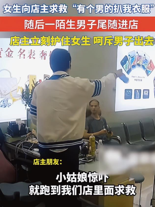 “这个老板必须发大财!”江苏南通,一女子向手机店店主求救,有人想要扒她衣服,随后以陌生男子尾随进店,店主霸气起身,把女生护在身后,并大声呵斥男子立马出去,谁料,男子竟坐在店里的凳子上,不为所动,眼神直勾勾的盯向女子! 10月21日,李朝(化名)在店里玩手机的时候,隔壁店铺的女店员神色慌张地冲进了他的店铺,并语无伦次地诉说着自己的遭遇。 原来有一名陌生男子尾随她,甚至还想扒她的衣服,李朝见状,立即意识到事态的严重性,他迅速地将女子引入柜台后方,为她提供一个相对安全的庇护所。 女子惊魂未定,浑身颤抖,眼神中充满了恐惧,李朝努力安抚着她的情绪,同时警惕地注视着店门口的动静。 果不其然,那名陌生男子很快就出现在了店铺门口,他的眼神死死地盯着躲在柜台后的女子,李朝急忙起身,毫不犹豫地大声呵斥对方离开。 可这名陌生的男子并没有感觉到害怕,反而在店里坐了下来,可眼神就没有从女子的身上离开过。 李朝意识到单凭言语已经无法阻止对方的行为,于是他故作镇定地表示警方已经接到报警,正在赶来的路上。 他希望这样的威慑能够起到作用,让陌生男子知难而退,但对方似乎并不在意这样的警告,依然执着地盯着女子,他手中还握着一个酒瓶子,散发出一股令人不安的气息。 尽管内心也有些许的恐惧,但李朝深知在这种关键时刻,他绝不能退缩,他必须挺身而出,保护无辜的女子免受伤害。 李朝毫不示弱地与陌生男子对峙,在这场紧张的对峙中,女子惊恐万分,大气都不敢喘一下。 陌生男子眼见没有希望就走了出去,李朝为了确保他已经离开,就跟了出去,结果看到男子跑到了女子的店铺,她的店里没有任何人,李朝直接拨打了报警电话。 与此同时,陌生男子觉得无趣,拿着酒瓶跑到了马路对面,幸好警方及时赶到现场,成功将这名陌生男子抓获归案。 事后,女子对男子的英勇行为表示了由衷的感谢,她明白如果不是男子的挺身而出和无私帮助,后果将不堪设想。 对于这件事情,大家有什么看法? 信息来源:大皖新闻《南通女子称遭陌生男子扒衣跑隔壁店求救,店主挺身而出》2024年10月23日