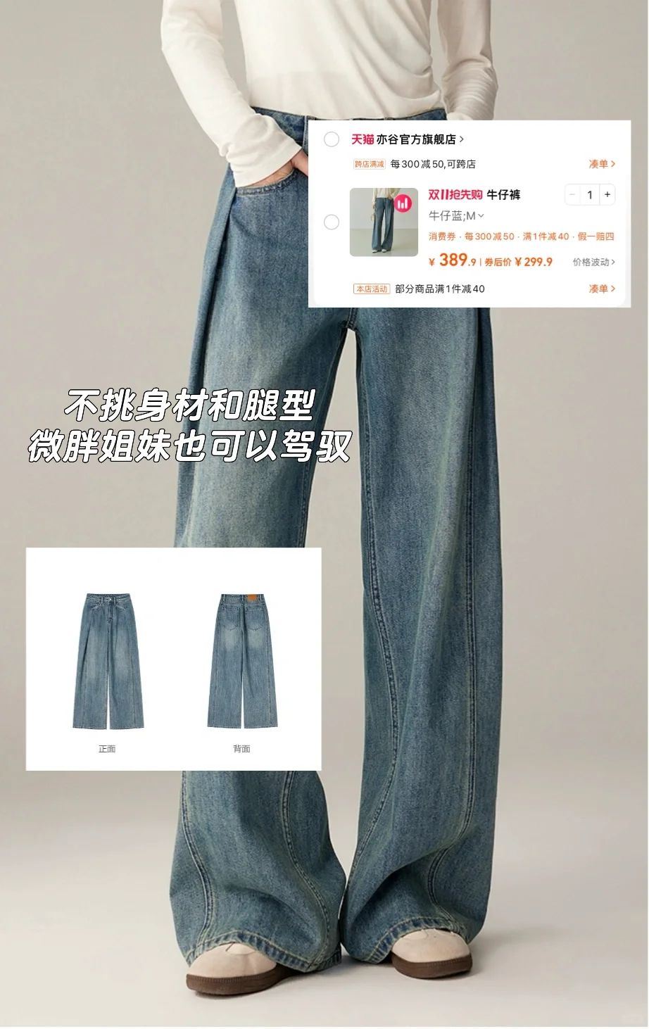 一起选了一条高腰的阔腿牛仔裤 这个复古蓝很得我心 腰件的褶皱设计特别显瘦 不挑腿型任何身材都能驾驭 微胖girl本命裤没错了 ~