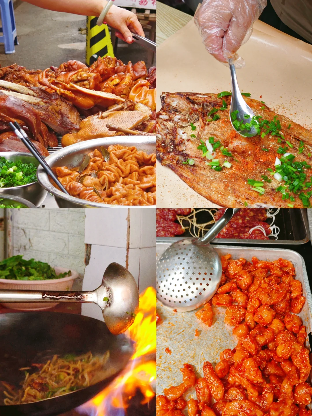 还有甜滋滋的糖醋排骨、超级入味的水煮花生、咸甜口味的酱干、好吃到嗦手指的卤味、水灵灵的蔬菜、新鲜的肉类……没有人能饿着肚子走出这里!