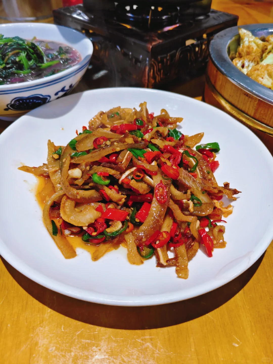⭐跟朋友约饭来到红星,看见这家店干净整洁,店员很是热情🔥,就进来吃饭啦! 小炒猪耳尖 辣椒爆炒,香辣入味,吃起来没有一点油腻赶,还嘎吱嘎吱好吃,下饭好菜👍🏻 香锅酸辣鱼 老大一盆,酸香扑鼻,鱼片薄又细,吃起来酸辣入味,很是不错👍🏻 还有大盆有机花菜,吃起来鲜嫩多汁,红笕菜也是很鲜嫩哦!刚好赶上有人过生日🎁店员还送上份长寿面,好暖心哦❤️