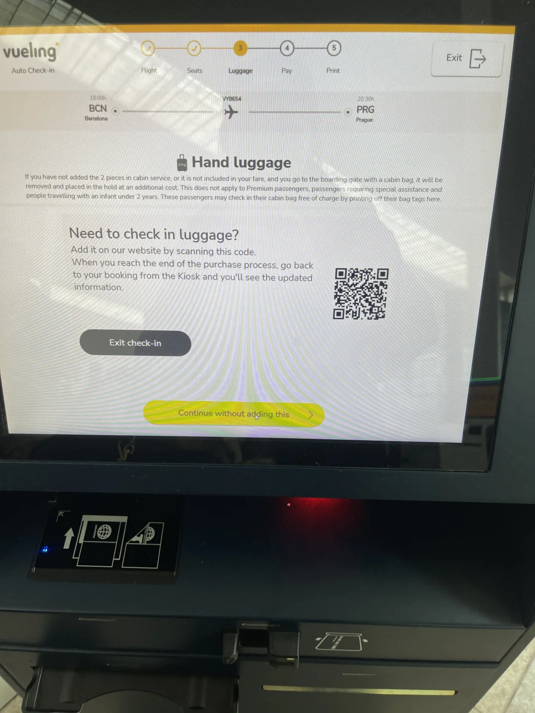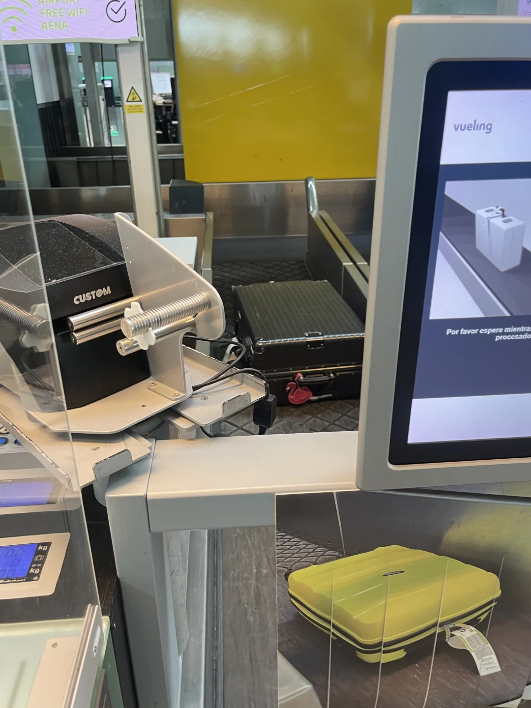 2️⃣ 西班牙伏林航空vueling,没有硬性规定提前值机,但也建议提前app值机,👉需要到自助称行李及托运,全程自助!跟着机场其他乘客做就好~