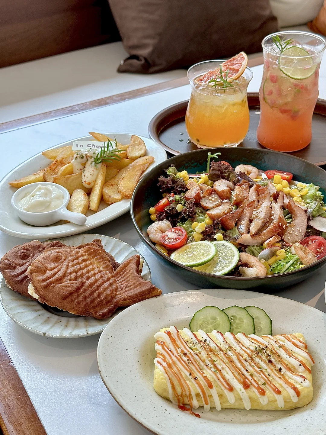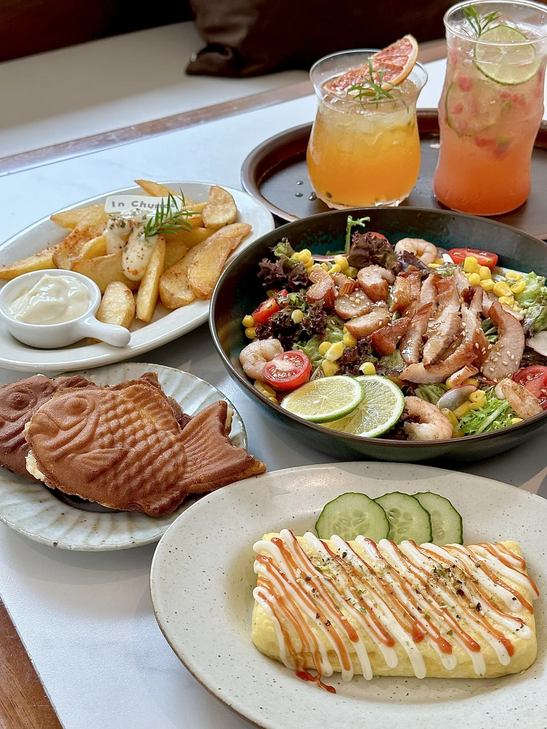 ⭐️橘柚和风沙拉 橘柚口味的沙拉汁特别清爽,搭配烤猪劲肉、虾仁口感很丰富,也是我的💗