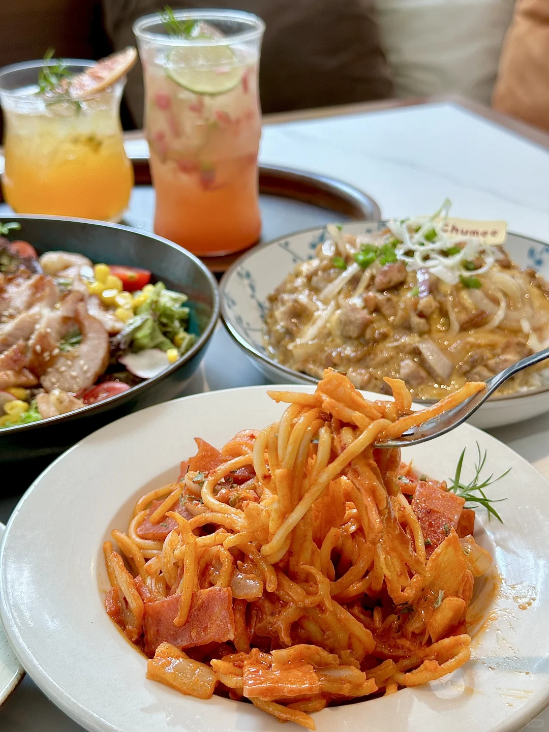 ⭐️泡菜培根意面 很特别的口味,泡菜和培根的搭配很妙,一点也不会奇怪,好吃🥰