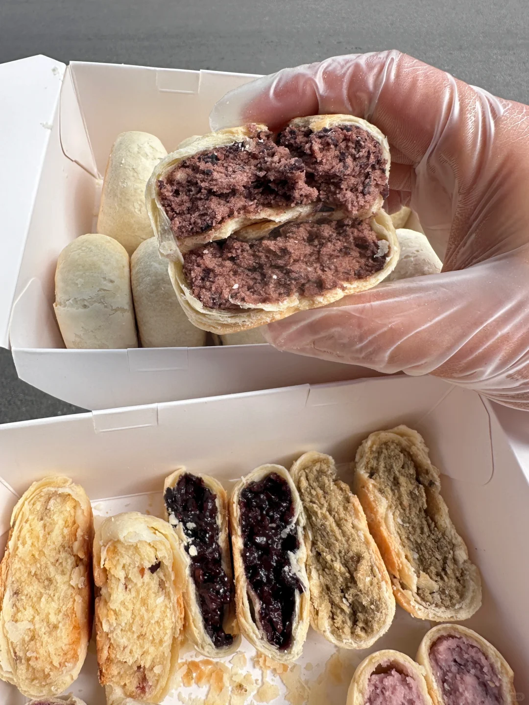 绿豆饼和红豆饼一块钱一个,超实惠的价格! 低糖低油,拒绝负担~绝不卖隔夜产品 保证你吃到的是最新鲜、最热乎的美味! 还有紫米、板栗、紫薯等十种口味~
