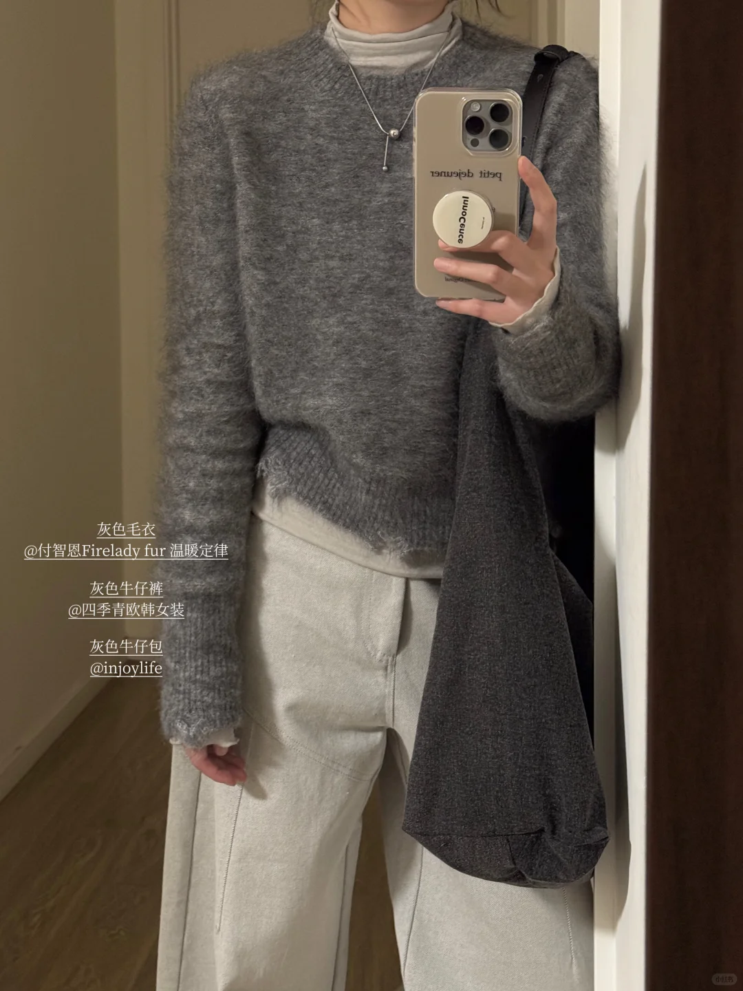 好秋冬🍂韩系通勤针织开衫配灰牛仔裤