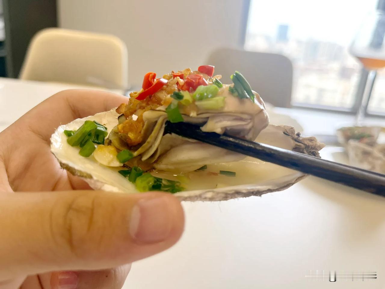 #生蚝怎样做超美味#生蚝有多种做法:炭烤、水蒸、煮粥、煮汤、煎蛋、刺身、火锅、凉拌、油炸、盐焗等等,我就喜欢烤生蚝。 开壳、清洗、大火烤3分钟再放蒜蓉酱,继续烤到汁冒泡即可。吃辣椒的可以剁椒或者切碎的指天椒。 烧炭不方便的可以用烤箱,上火180°C,下火200°C,10分钟。没有烤箱的可以用家里的锅蒸。天气渐冷,趁热吃!