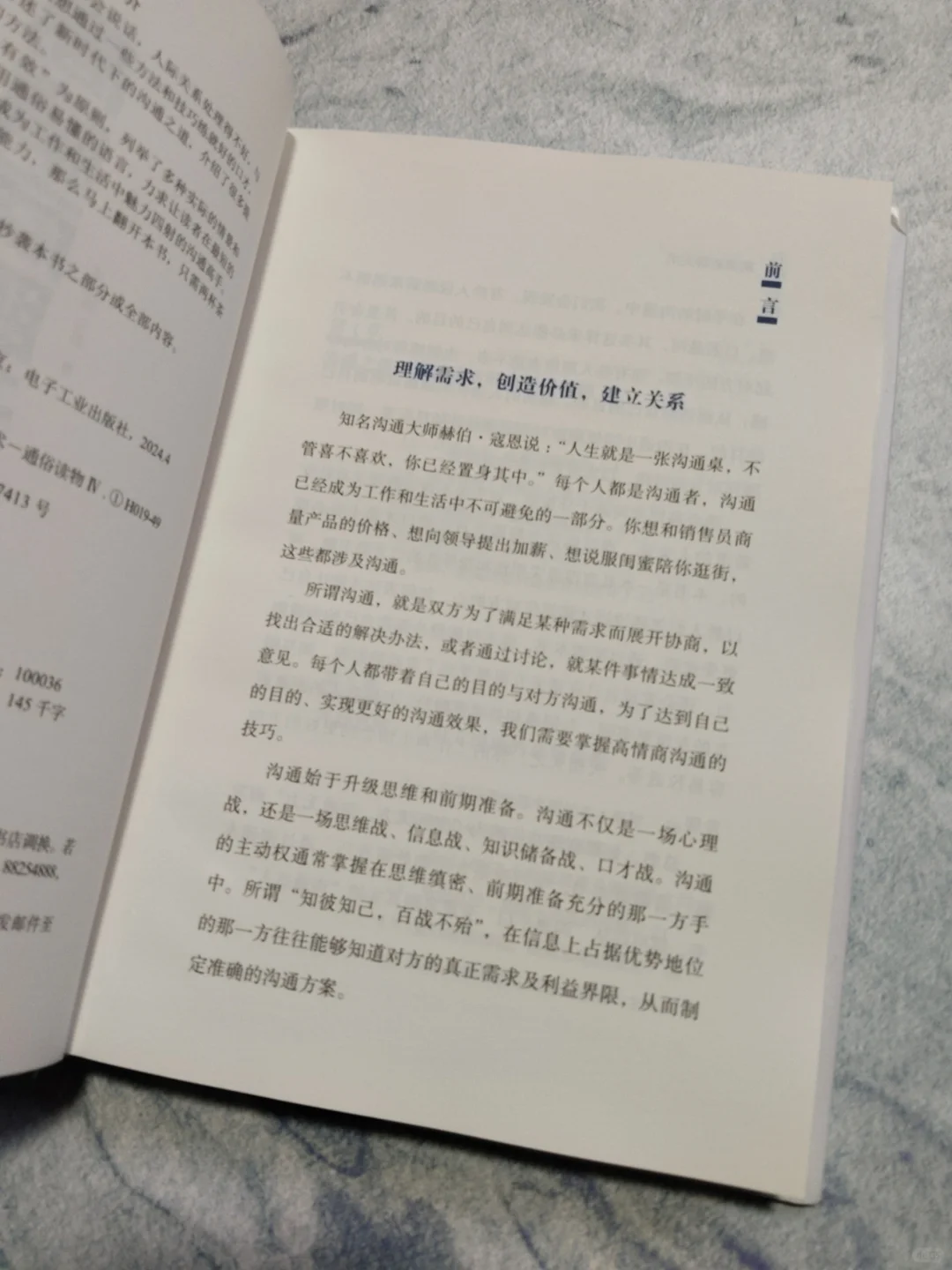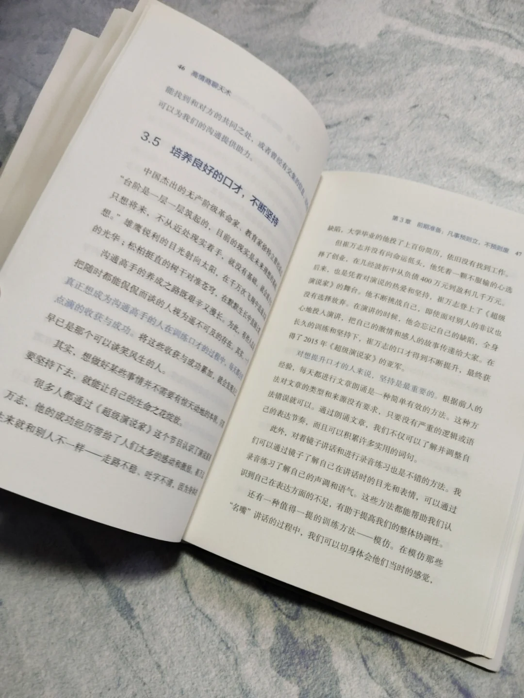 其他的呢?作者也告诉我们,在沟通之中我们要言之有理,要掌握能够说服对方的奥秘;要学会辨别对方,根据不同人给予不同的沟通方法;要学会讲故事,让对方沉浸于我们的故事之中,用情绪感染对方;要学会巧妙提问,通过提问掌控局面,当然书中作者还告诉我们了一些注重形式、攻破心防等的方法,让我们在沟通之中可以巧妙应对任何的可能性