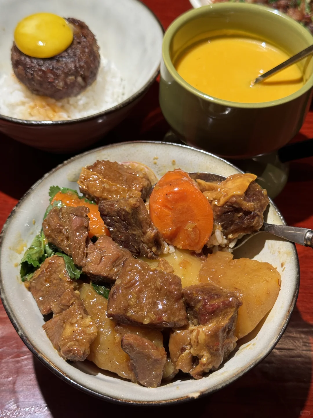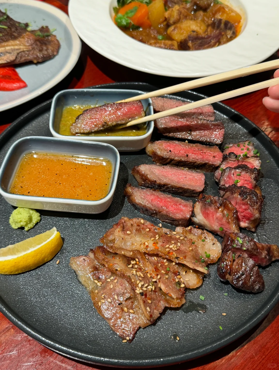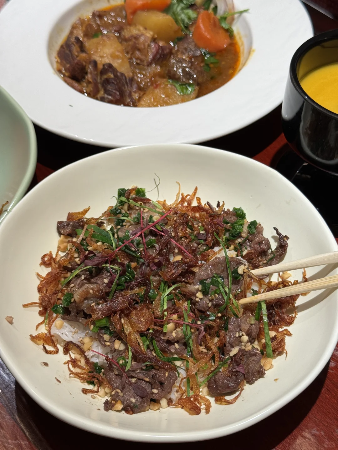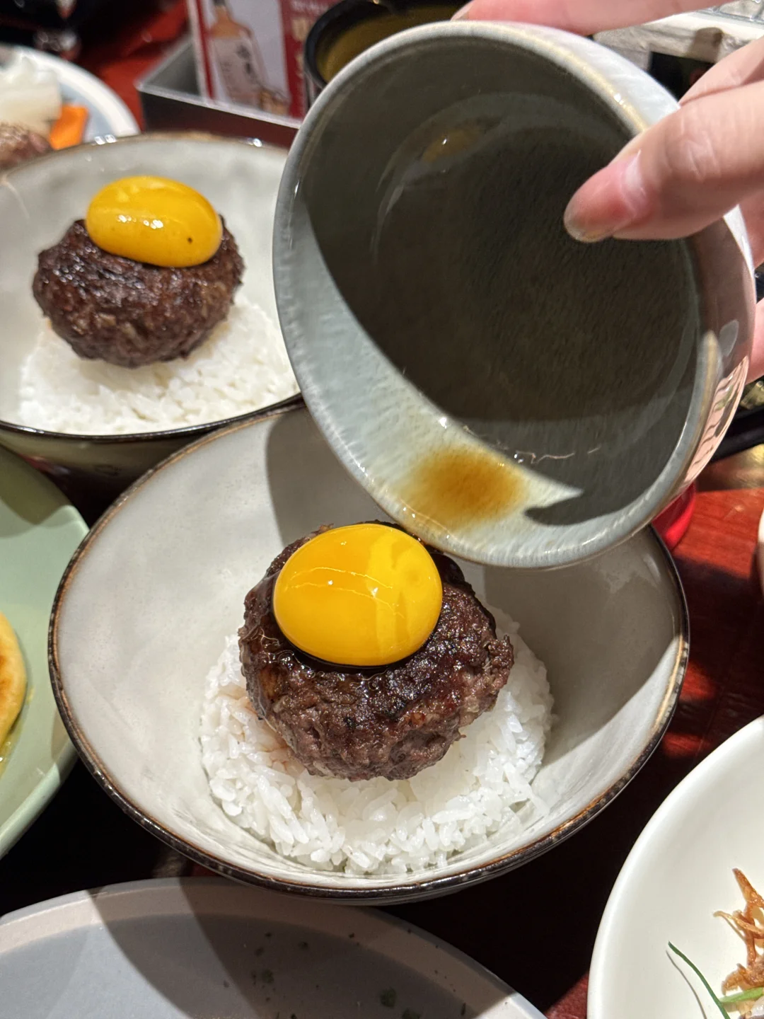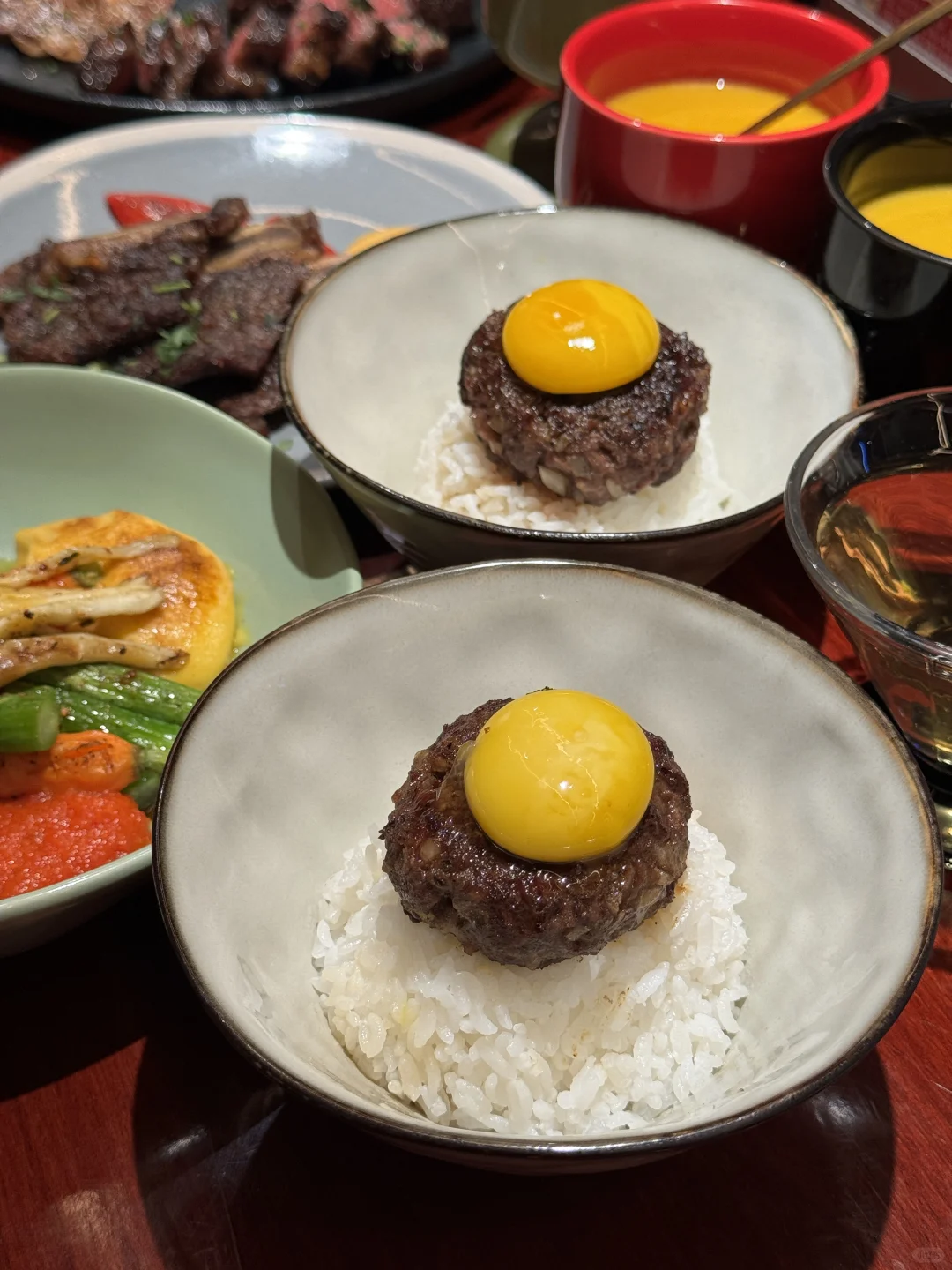 忌葱勿用老板都推荐的和牛料理店,藏在坡子街的巷子里店里很温馨 真的很适合一人食! 菜品种类很丰富,很有特色,味道都很不错!!和牛肉汉堡饭好香,无菌蛋搭配牛肉、米饭,一口下去好满足!!还有和牛滨海粉、和牛肉肠、和牛三拼…每个都好吃不踩雷,唯一的缺点就是生意太🔥 记得提前预约!!!