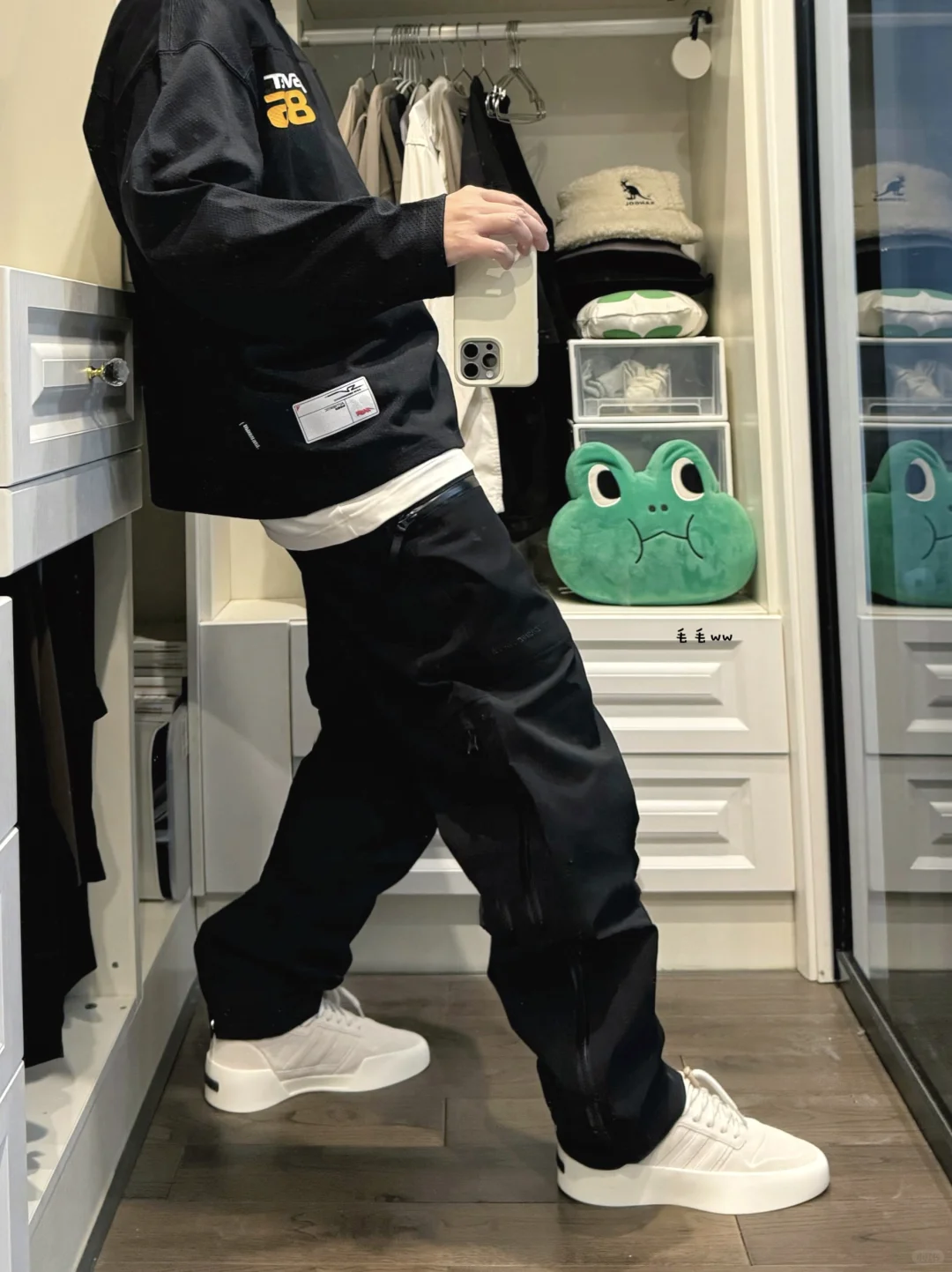 -上期格雷系灰色户外穿搭,确实很独特;本黑白色系层搭,属于“万金油”耐看型 . -附带侧拉链的冲锋裤,容易做出褶皱感;整体弯刀裤型,裤脚的按扣非常方便调节 . —————— . ✏️本人178cm75kg 球鞋尺码265mm(正常EU42) . 💭以上均为我个人观点,不喜勿喷,欢迎讨论