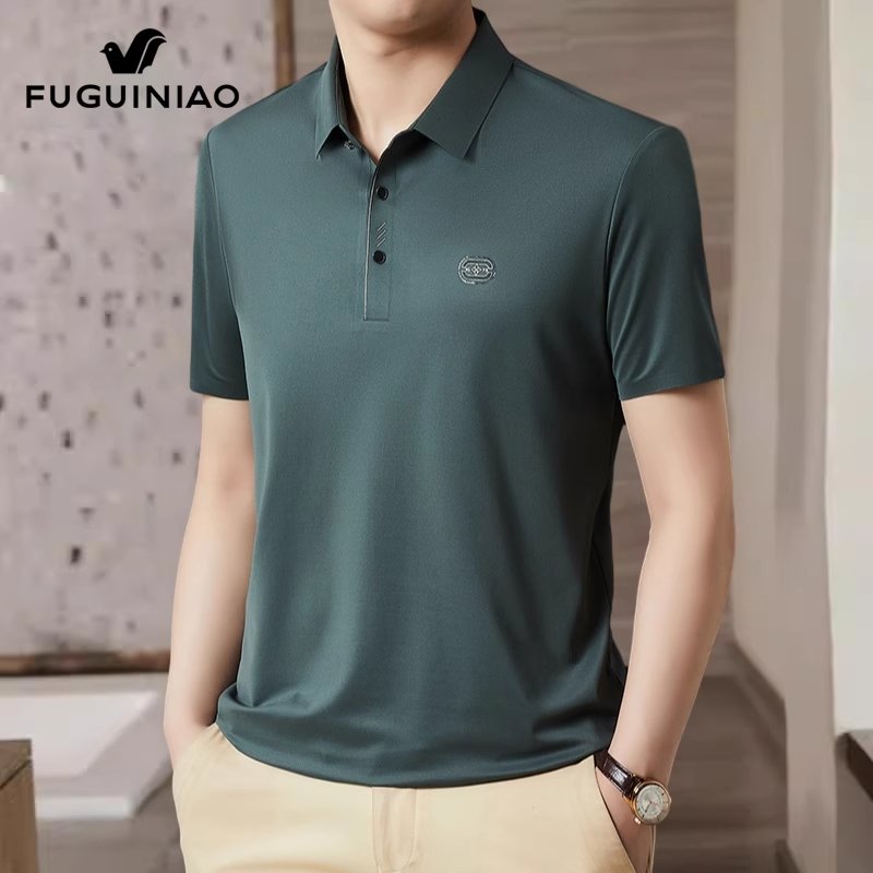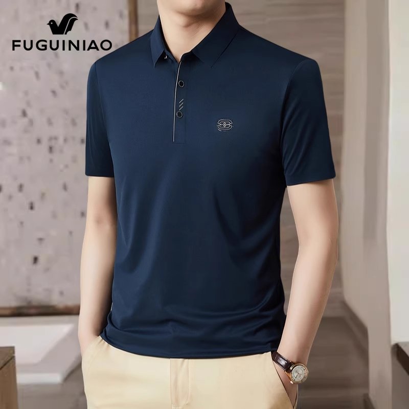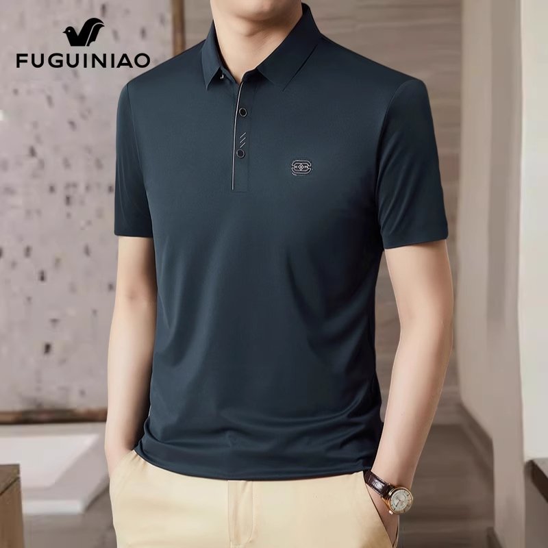 富贵鸟冰丝短袖t恤男士凉感半袖上衣服2024夏季新款休闲Polo衫男