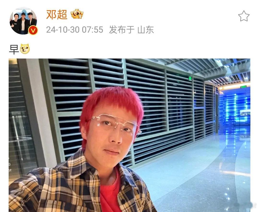 45岁的邓超变身潮男,红发齐刘海,金属框眼镜,搭配格子衬衫,看起来像20来岁小伙子似的,差点没认出来[允悲]