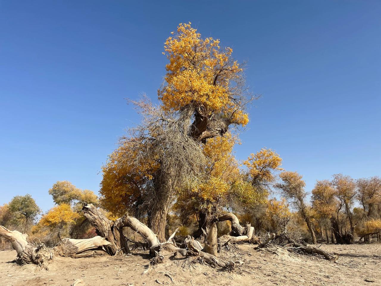 #难忘的新疆旅行#塔克拉玛干的胡杨林染上了金黄色