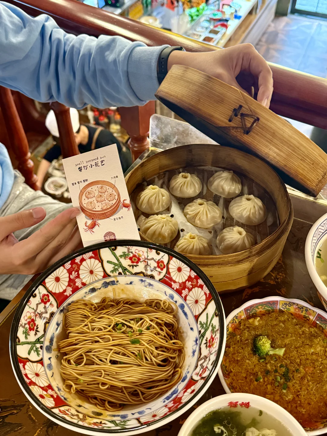 就在人民广场这边南京东路上!和朋友反反复复来吃的蟹黄面!!几天不吃就想着这一口🥹🥹现场剥蟹🦀拒绝预制菜!!!10月正是吃蟹的好时候!!本月已经三刷这家了!! 除了蟹粉黄金捞面🍜蟹粉小笼和蟹粉虾仁馄饨也是每次来都点的!!小笼包一口biu汁真的好好吃😭每一个馄饨都个头饱满!!蟹粉和虾仁搭配的刚刚好!