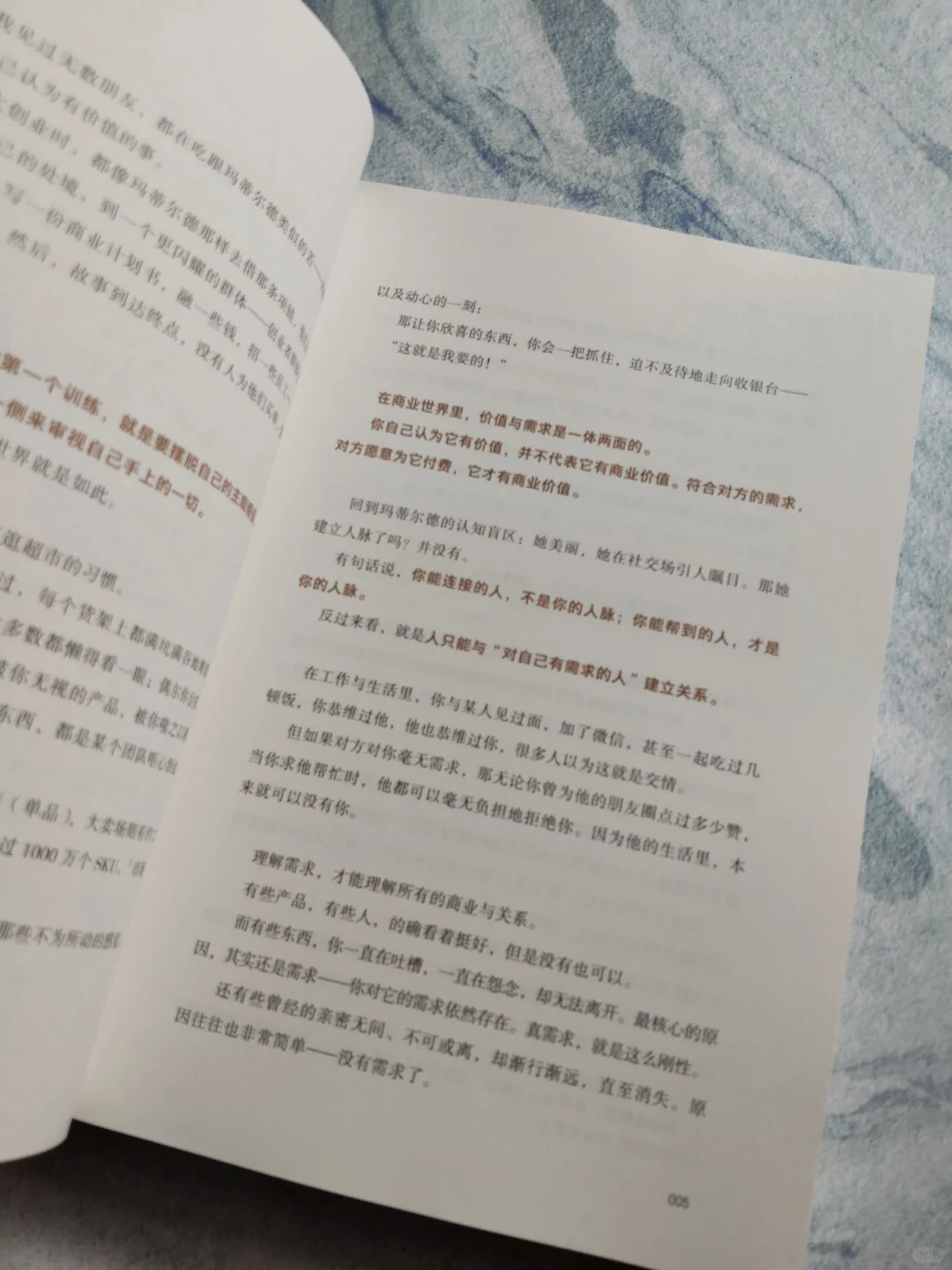 那就让我们记住作者在这本书给我们通过的核心理念:洞察需求,提供价值;与客户/市场达成共识,获得成交和关系,因此获得钱与资源;从而发展自己,投资自己的竞争力,让自己更具生存优势