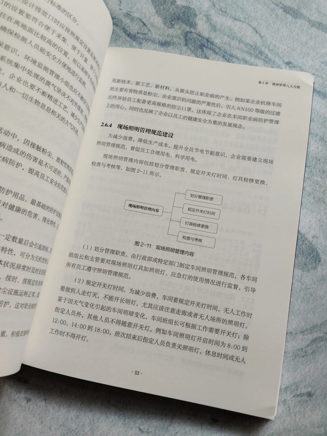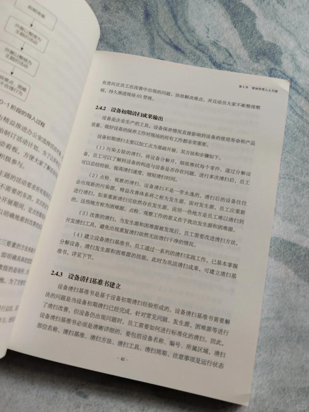 但现场管理不仅仅是人的管理,更是包括机器的管理。而这里作者也给出了线体布局,也给出了设备管理,等等的管理细节。那对于物料、法则管理呢?作者也给出了大量可供性借鉴的管理方法、作业流程,让每一个管理流程都能落地