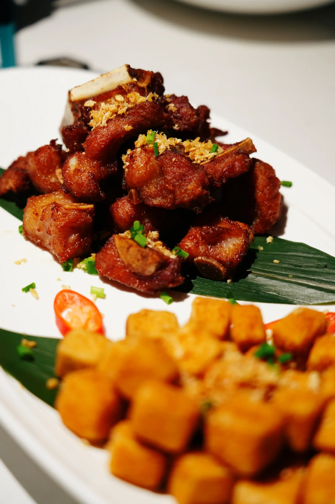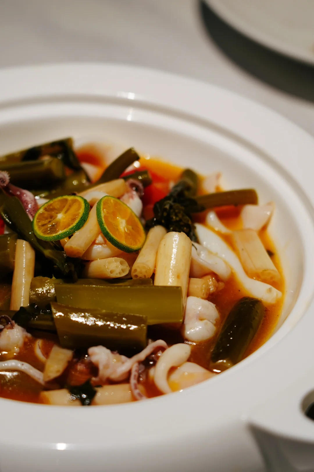 吃了点新菜。小黄鱼是单人单份干煎的,鱼肉挺嫩也挺鲜,第一道菜吃这个还挺开胃的。酸辣的鱿鱼很够味,但料有点多有点杂,看起来没那么清爽。炒蛏子挺大挺肥,也没有沙子,但我还是更爱吃酸菜炒猪肚,酸菜炒猪肚是惊艳,蛏子就只有常规。炸排骨和豆腐挺嫩的,要是配点酱就更好了。