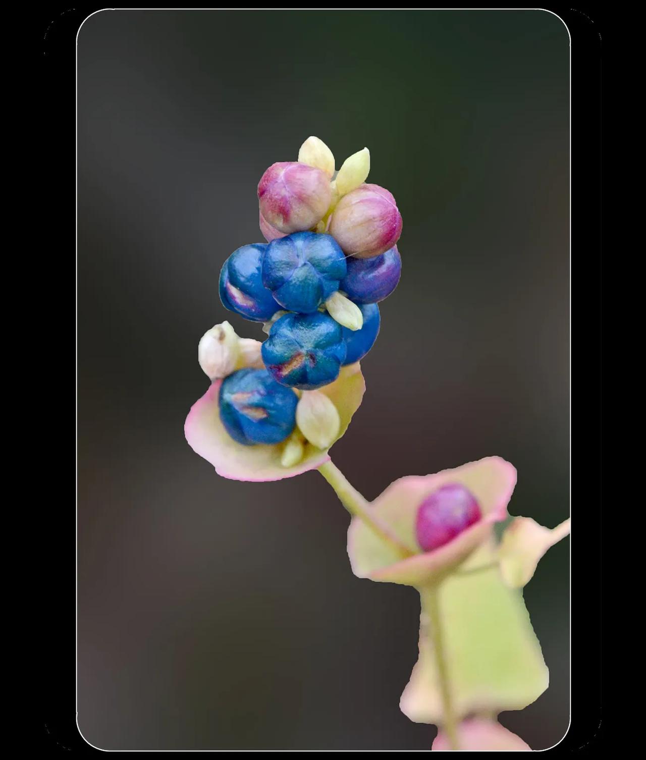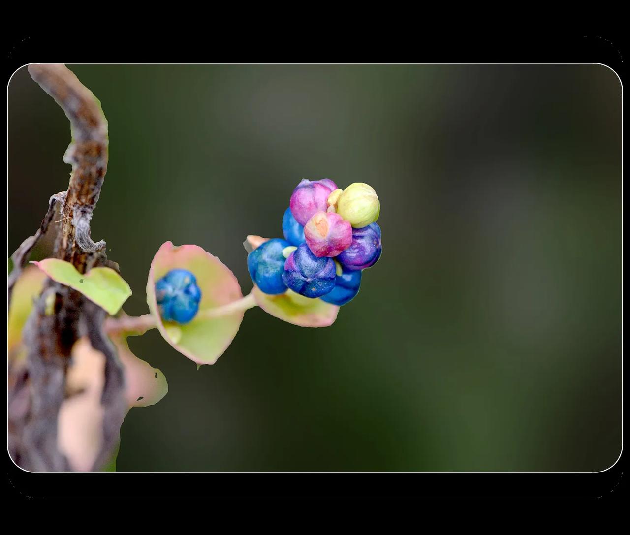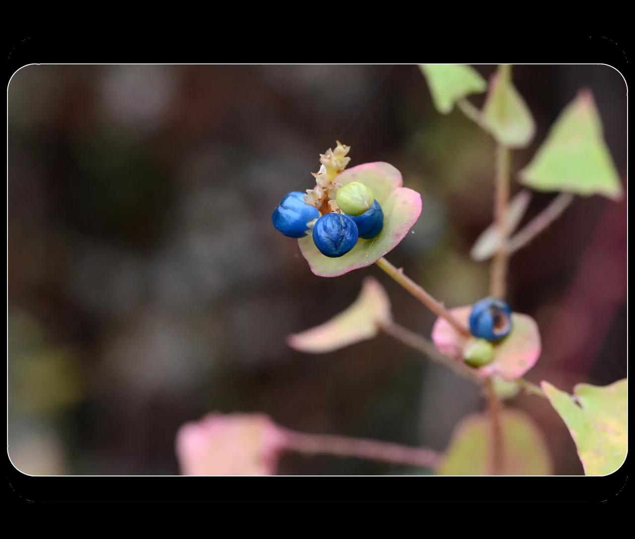 《深秋的“杠板归”》 深秋的杠板归可算是奇花异草了,三角形的叶片,满身的倒刺,还有那五颜六色的果实。 杠板归,又叫“蛇倒退”,是蓼科蓼属植物,集食、饲、药于一身。作为中药材,有一个传说,还有不同版本。 说是三人上山,一人被蛇咬。此时来了一个老者,让二人下山拿杠子板子来以便救治。待二人回来,老者用一种草把伤者治好了。问老者是什么草,老者想了想说,就叫杠子板子归吧。原来老者也不知道杠板归的名字。 还有一个版本是说一人被蛇咬了,两人用门板抬伤者去就医。半路上饿了,就吃了一些身边的草果。没想到伤者竟然消肿,于是决定扛板子回家,把那草叫扛板归,后来改为“杠板归”了。 【原创】 #中国摄影圈# #花花草草#