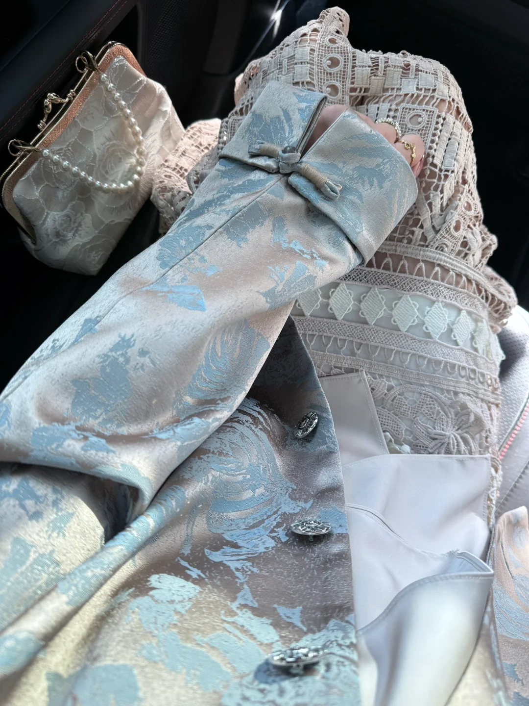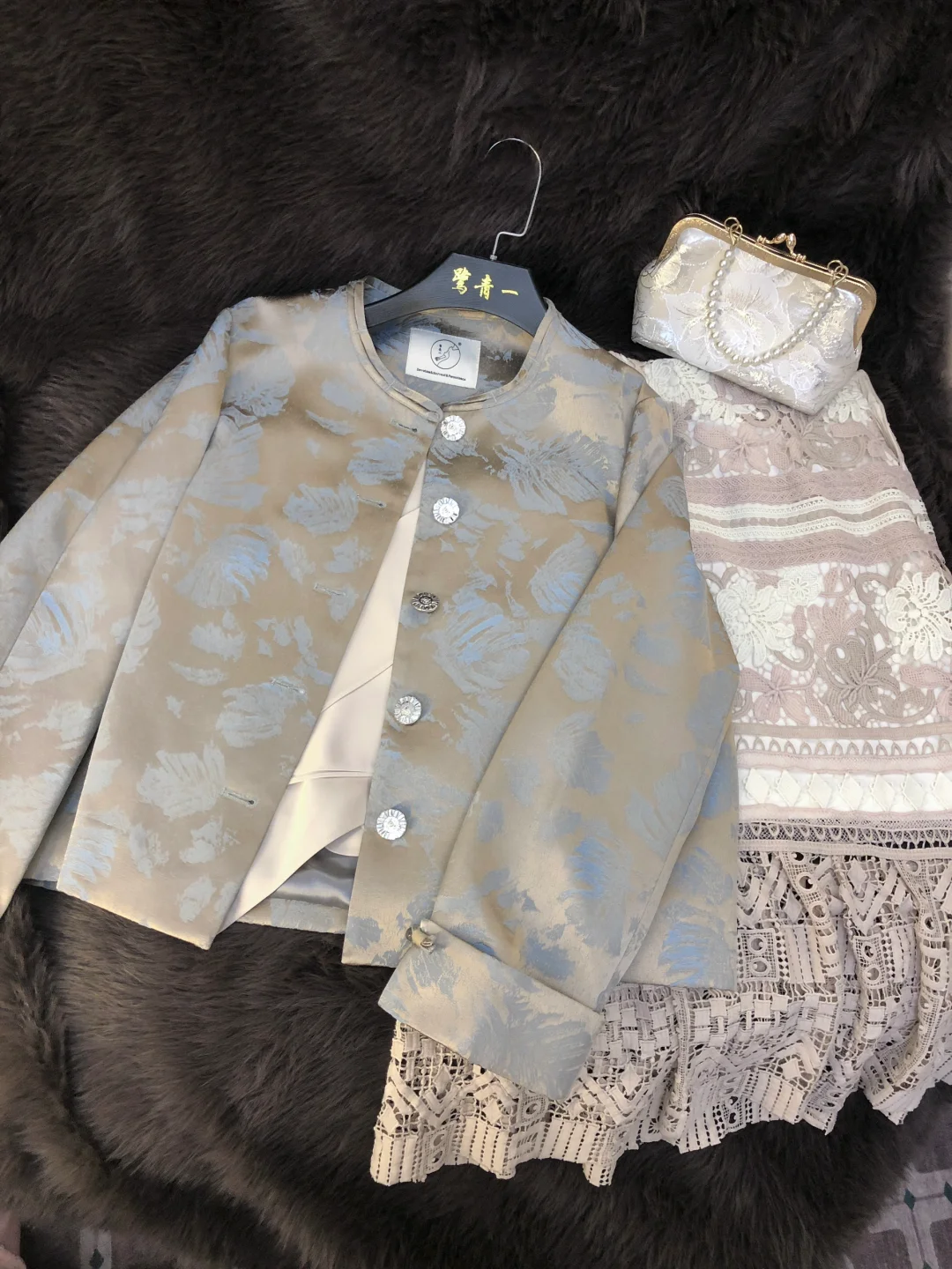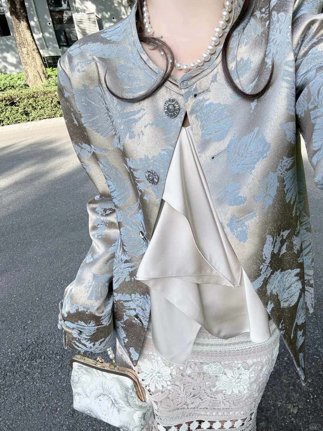 这个外套的颜色真滴很高级 是那种有光泽的布料 扣子在阳光下也是闪闪的(图5-6)✨ 🥂