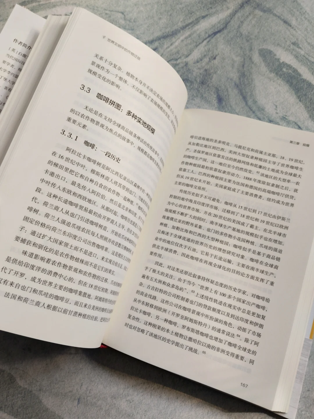 其他的农作物呢?在这本书中所涉及到的还有很多,从我们极为熟悉的谷物,到给我们人类生存奠定了重要基础的块茎类植物,也包括像可可、咖啡这样和我们的茶叶具有一样地位的经济作物,它们的发展历程在这本书中都能够得以清晰展现