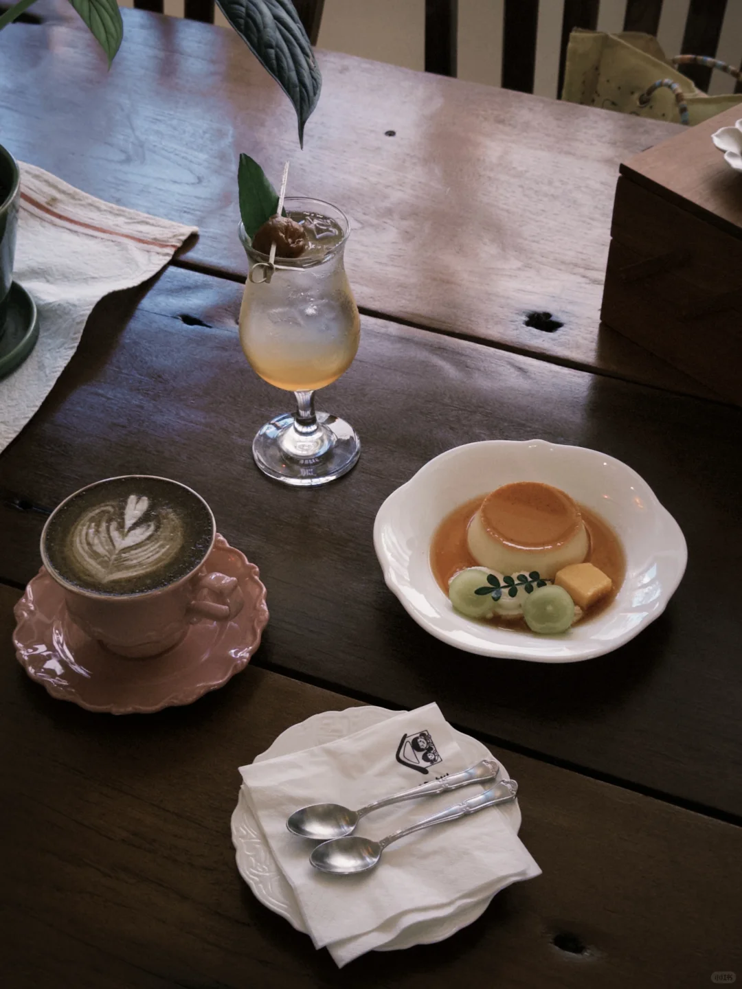 藏在村子里 一间自建屋改造的日系咖啡馆🍂 好拍得压根不像是在中山~~ 🍸夏日梅露 用自家酿的梅子 好清爽 🍮布丁也不错吃 下次还来♪( ´θ`)ノ