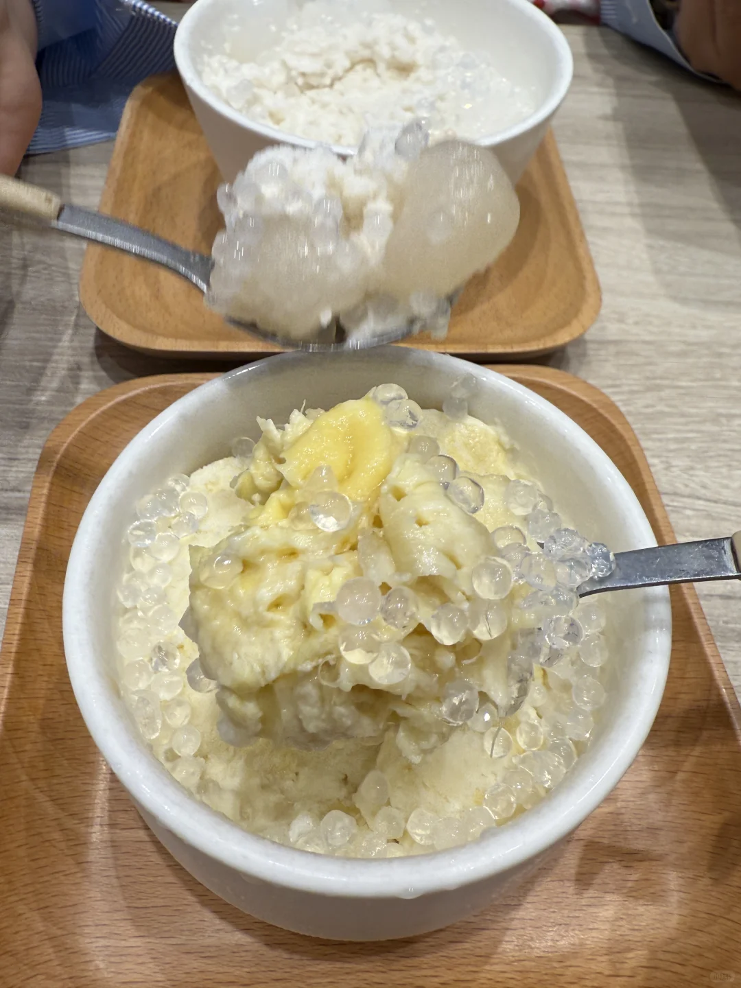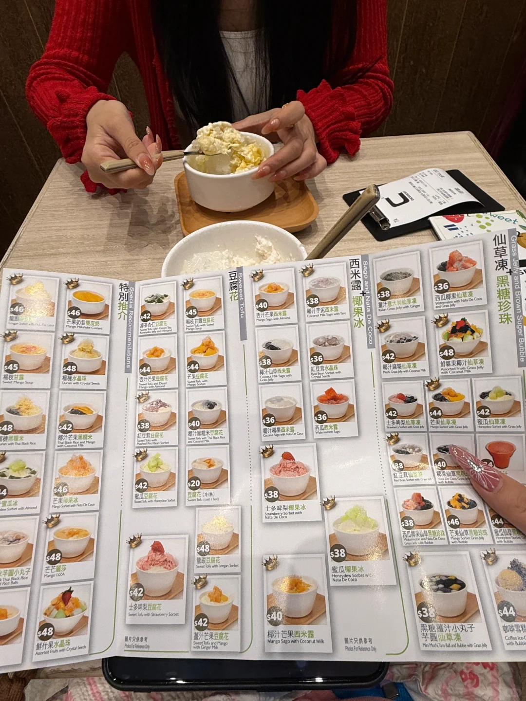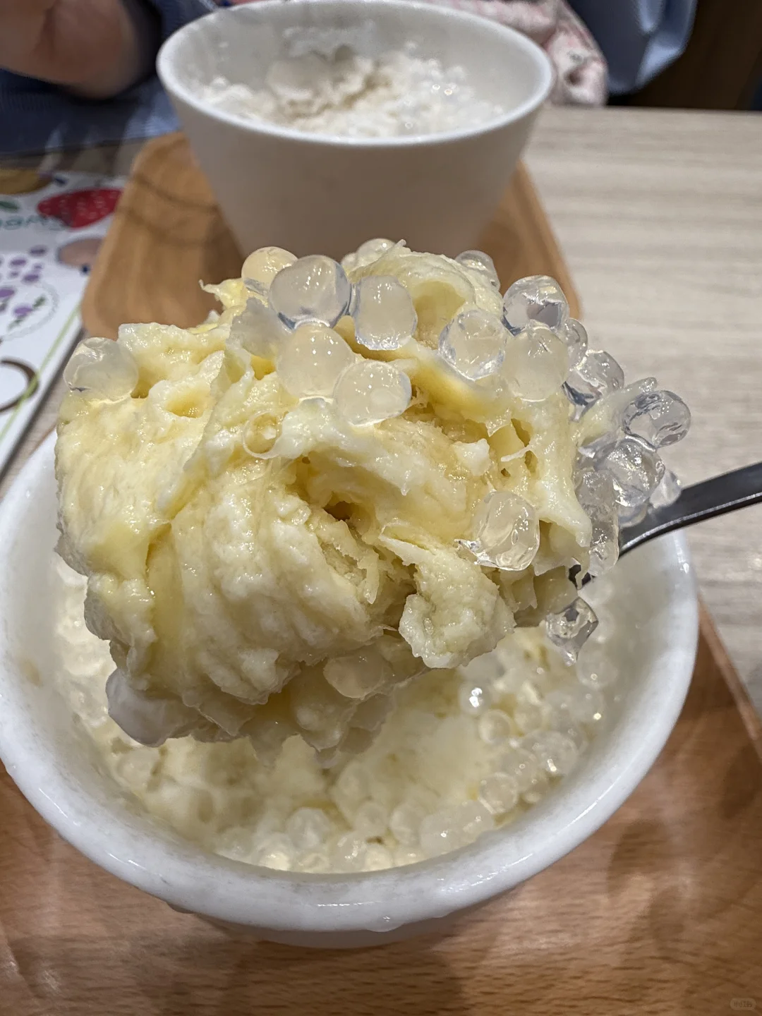 目前香港只有一家 墙上还有刘德华的签名 推荐的龙眼冰和榴莲冰都好吃到流泪🥲 特别是龙眼冰 龙眼味很浓郁 而且冰沙很绵密 0冰茬 吃到口里好清甜的甜味 一口口完全不腻 搭配那个小晶球有点脆爽的口感 好绝!