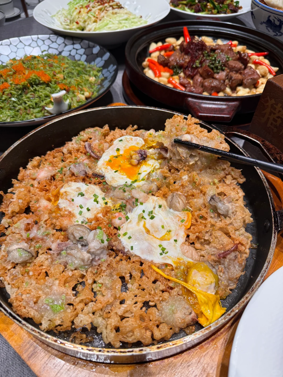 也太好吃了吧!!!! 有朋友好久不见就定了这家店🏠因为这家店应该算是衡阳大招牌了!而且环境也还蛮好哦👍难怪能开这么久~ 一定要点这个海鲜翡翠炒饭🦐🍚好吃!!特别的在于这个菠菜汁时绿色,尝起来也没有很重的调料味🧂而且米也是选的那种长长的米🌾!! 还有啫啫焗掌中宝🥘椒麻雪花牛肉粒🐂……都好好吃🤤