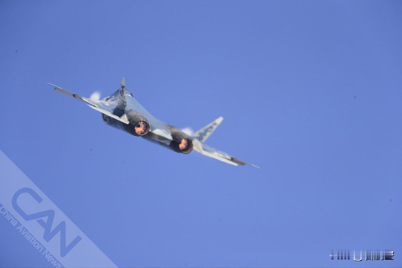 #2024中国航展#11月7日中午,俄罗斯隐形战机苏-57进行首次场地适应性训练,持续7分钟左右。此次是苏-57首次亮相中国航展。(摄影:门广阔)