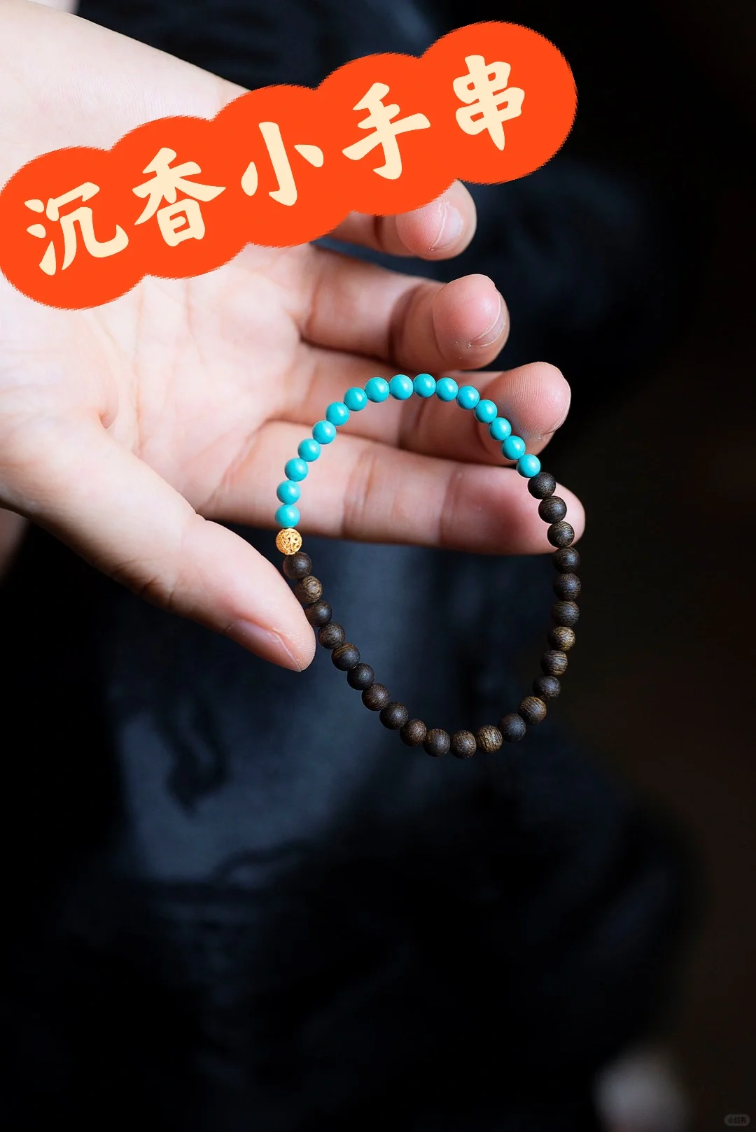 绝对是很阳光的颜色4mm小精品沉香手串。绿松石·18k金搭配,很阳光百搭,再合适不过的叠戴小手串,小神器