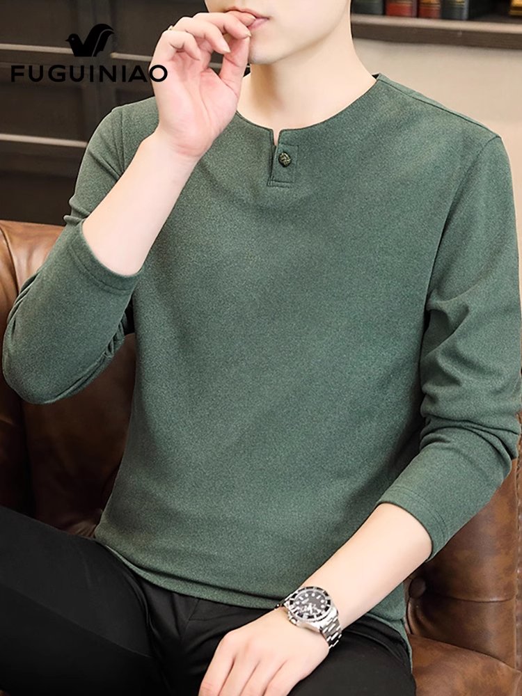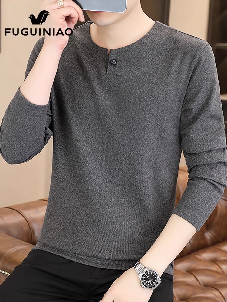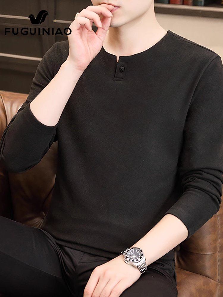 富贵鸟长袖t恤男士圆领打底衫秋冬季德绒保暖上衣服休闲体恤男装
