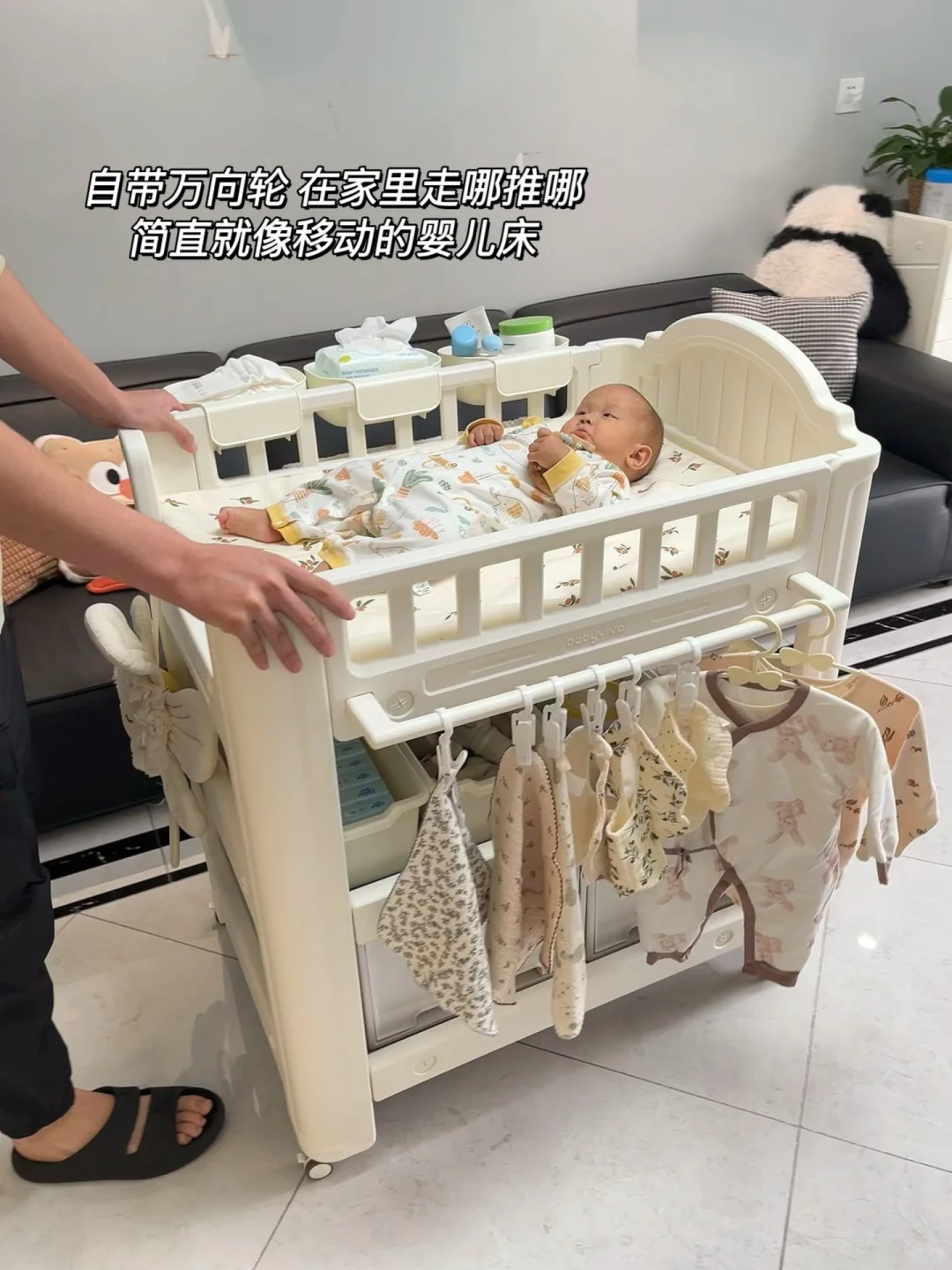 关键是它还巨能装,下边两层可以收纳宝宝的囤货、衣服、床品,两侧还可以挂浴巾、换洗衣服,随手拿取敲方便,等娃大了还能当置物架,放到儿童房收纳玩具,好看又实用