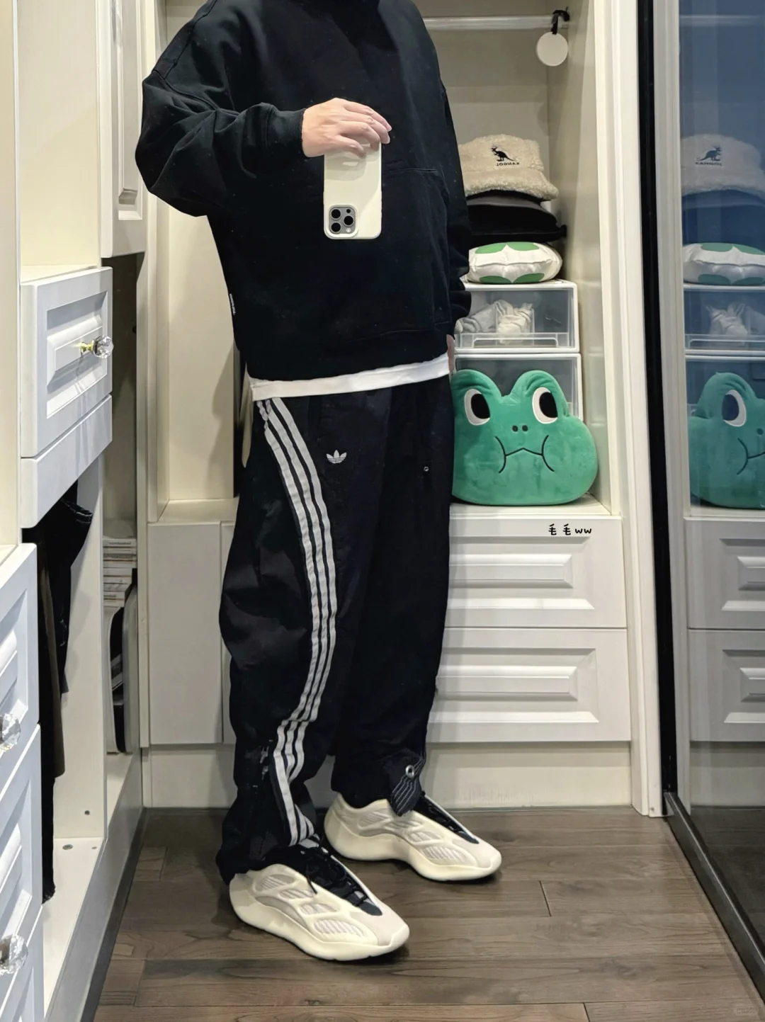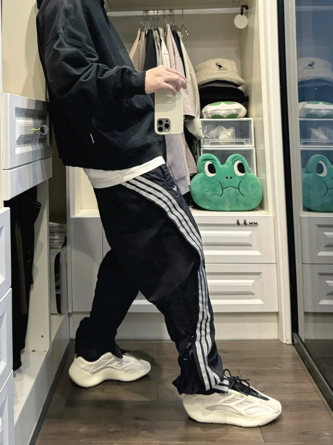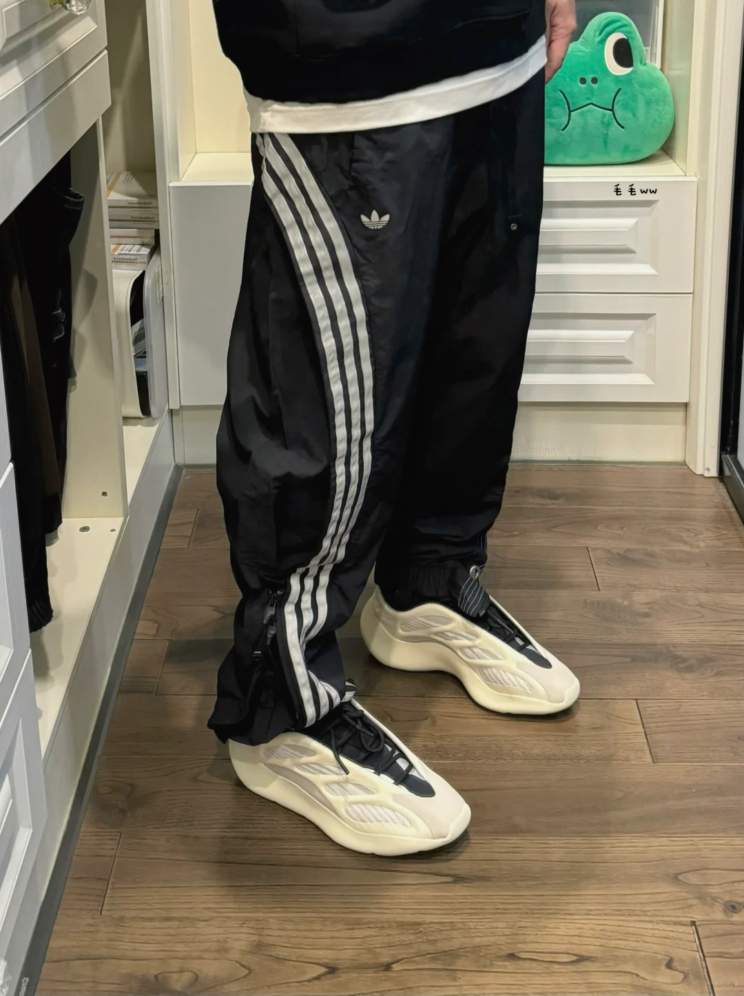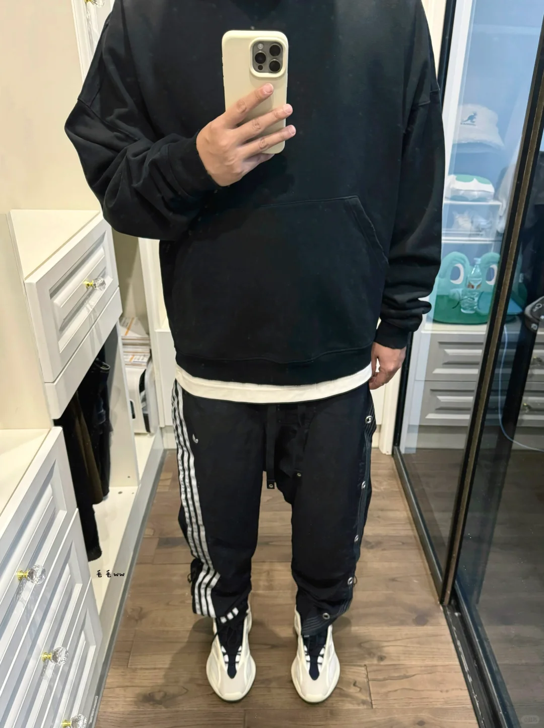 -束口裤穿过太多了,但这条足够特别;左右不对称的logo细节,锥形裤略带弯刀版型 . -YEEZY或者FOG的鞋款都没有问题,整体呈现先锋的感觉,搭配出不一样的街头运动 . —————— . ✏️本人178cm75kg 球鞋尺码265mm(正常EU42) . 💭以上均为我个人观点,不喜勿喷,欢迎讨论。