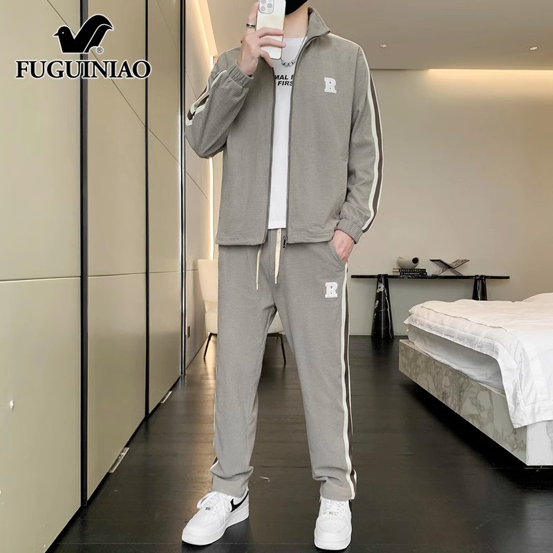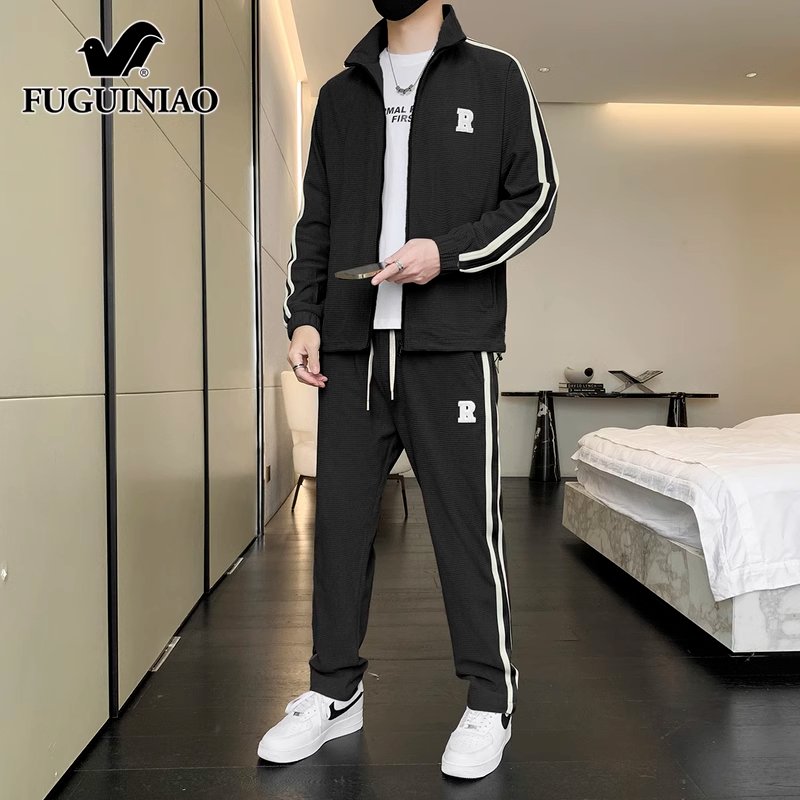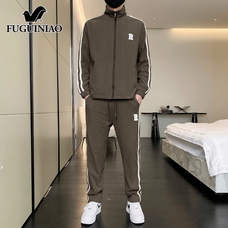 富贵鸟休闲运动套装男士春秋新款潮流帅气开衫卫衣冬装跑步两件套