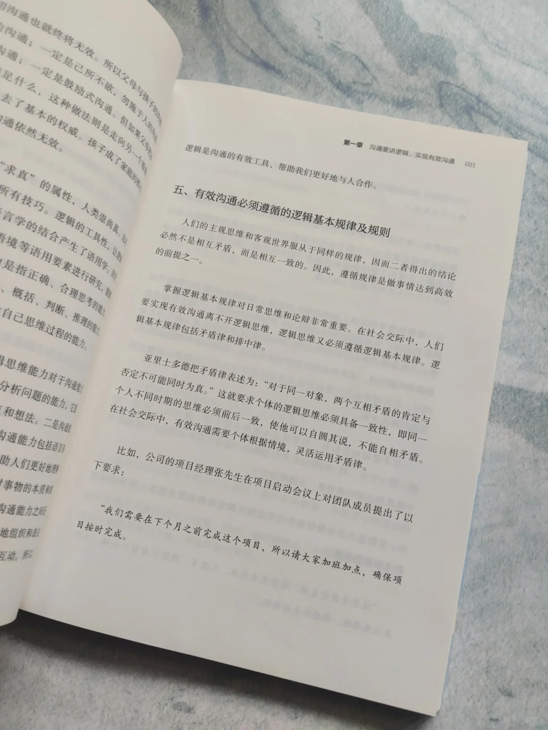 作者所提到的沟通五步,作者所要告诉我们的沟通秘诀到底是什么呢?其实就是从沟通的逻辑,从说服力 从沟通效率,从沟通技巧,从沟通氛围这5个方面为我们打造良好的沟通。而在这本书中,作者以案例分析的方式,以具体拆解的步骤为我们讲解着这些秘密是怎样落实于现实之中的