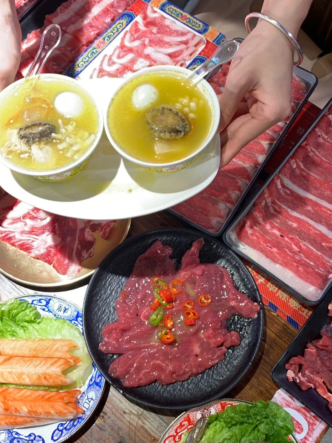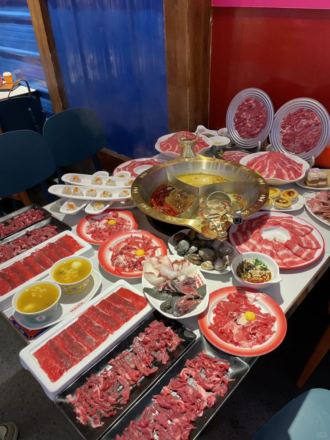 他们家牛肉真的很新鲜✅牛肉堪称一绝👏鲜嫩的牛肉片,肉质鲜嫩 ,入口即化 肉香四溢 真的非常好吃😋 🦐大虾、扇贝、蛏子、鱿鱼等各种海鲜,新鲜又美味! 还有各种水果、 甜品 、饮料 、烧烤花样真的多,啊,吃不完,吃不完,真的吃不完~ 难怪都在说要空着肚子来,猛猛炫,哈哈哈~