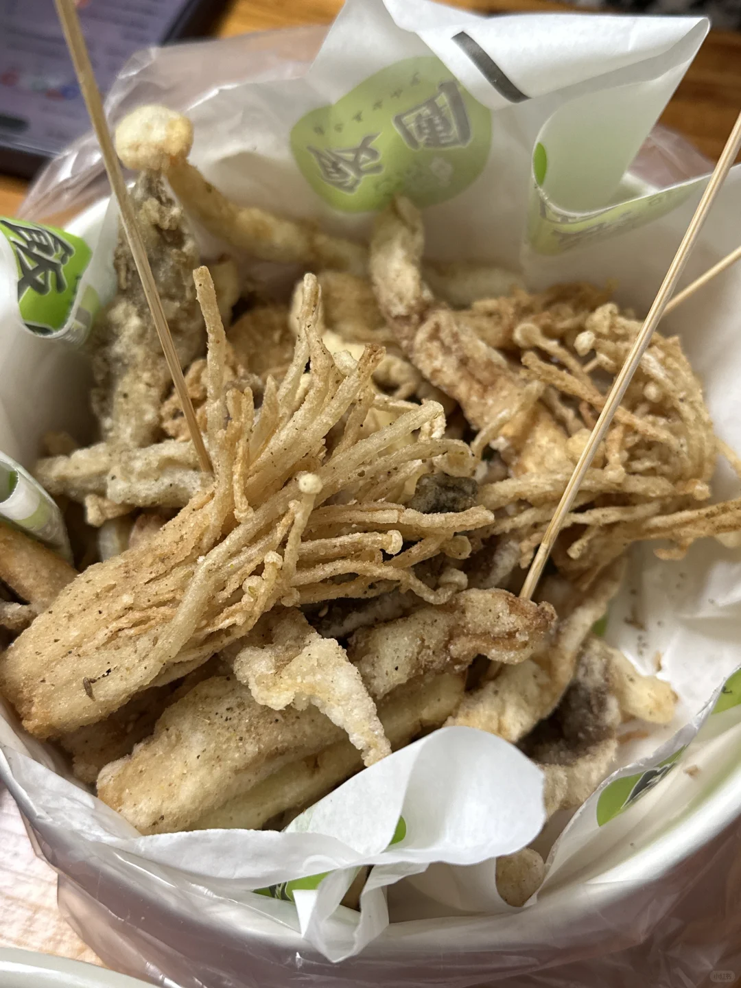 路边的炸蘑菇尊嘟好好吃!!! 好几种随便拼!!!甘梅➕孜然jue了!!!!