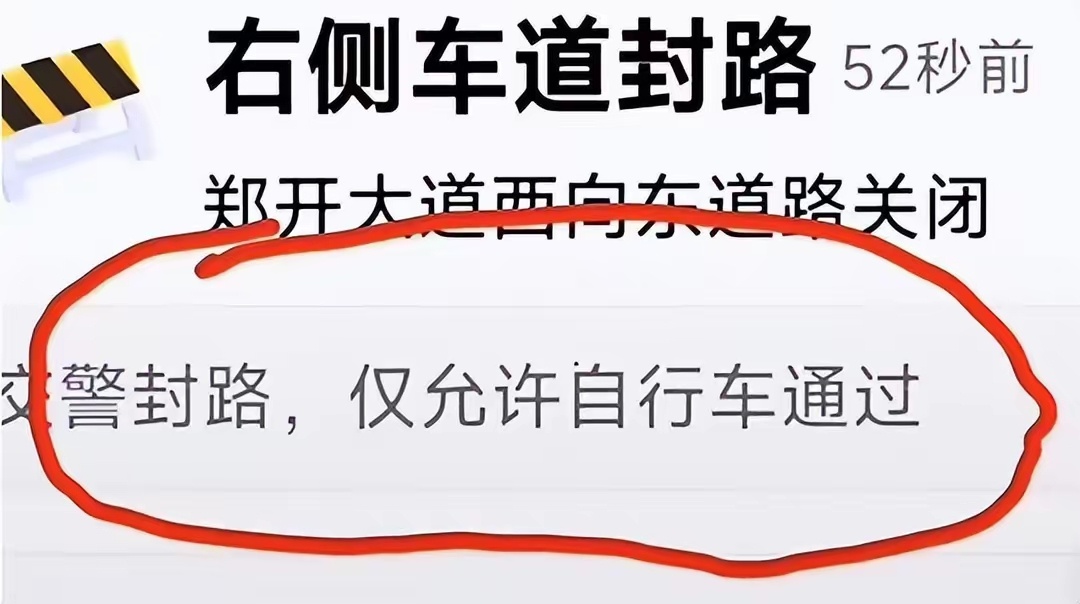 现在的郑开大道因被大量共享单车,以及骑行者随意丢弃的物品占用,在2024年11月9日16时至11月10日12时之间,被禁止非机动车通行,而开封市的各大景区也已恢复正常开园时间。