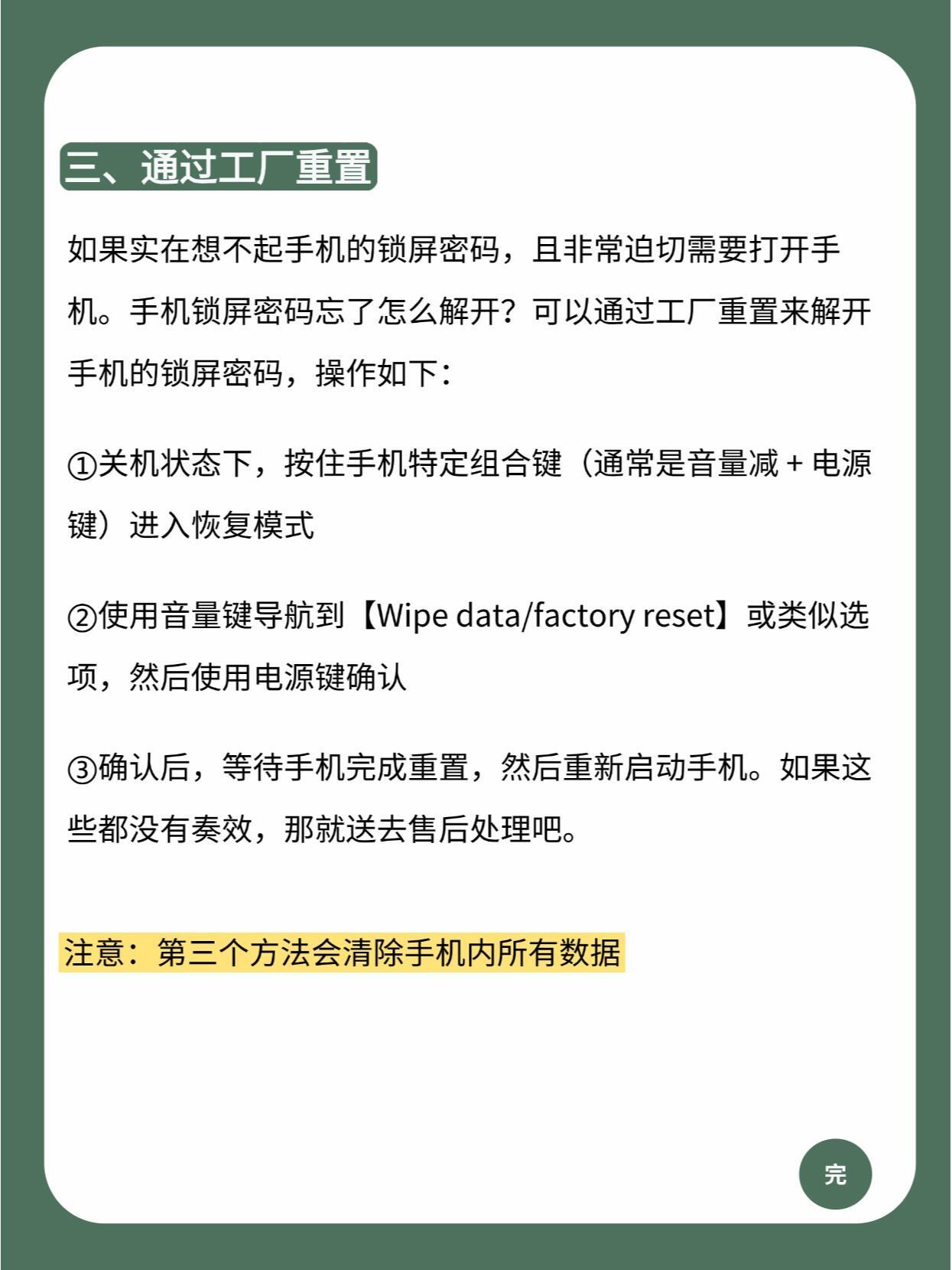 在日常生活中,我们常常会因为各种原因而遭遇手机密码遗忘的尴尬状况。那么,当手机密码忘记了的时候究竟该如何是好呢?别着急,下面就来给大家详细介绍试试这 3 个非常实用的方法。