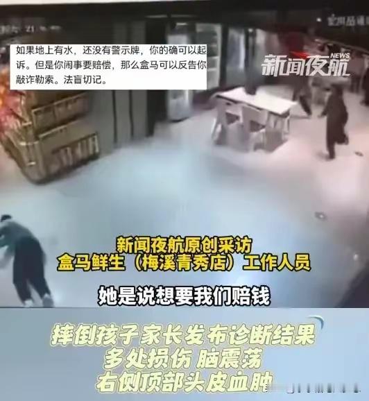 #疑儿子盒马鲜生摔倒没人扶妈妈砸店#