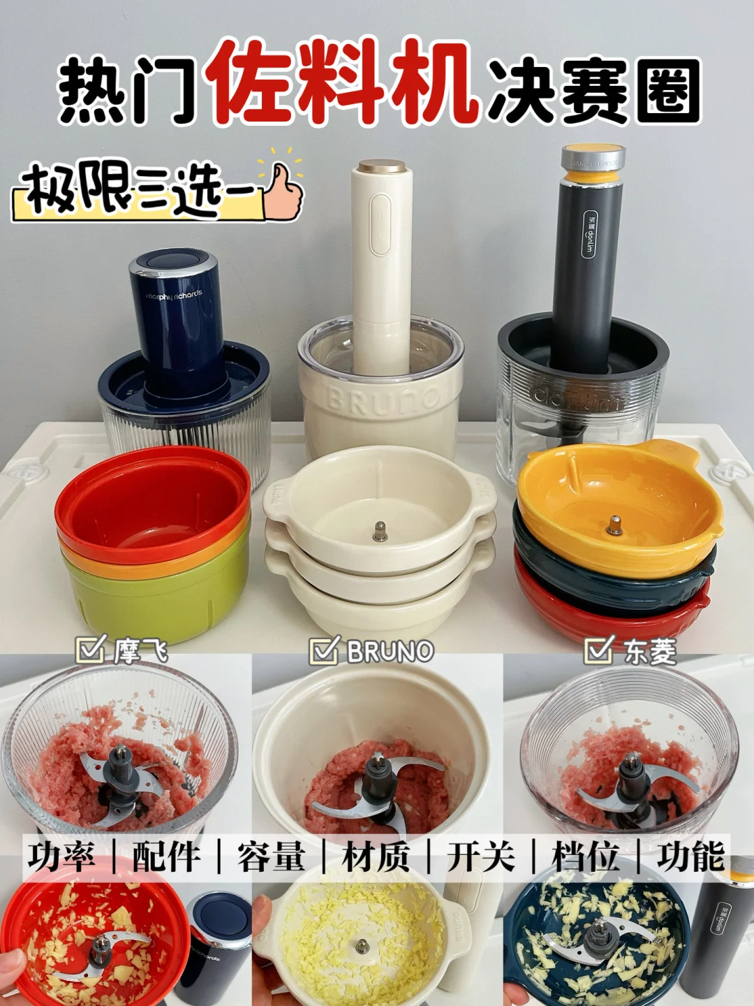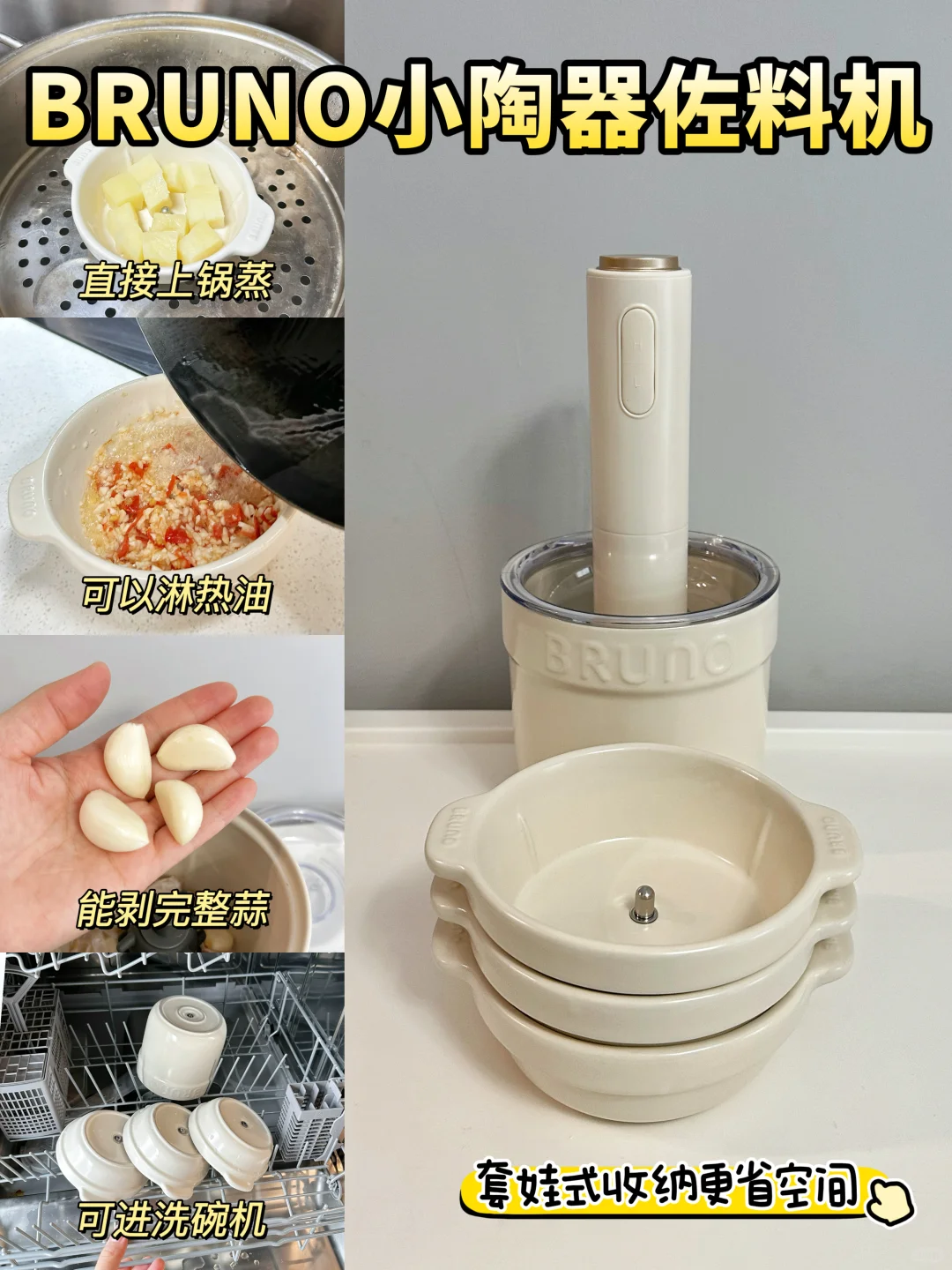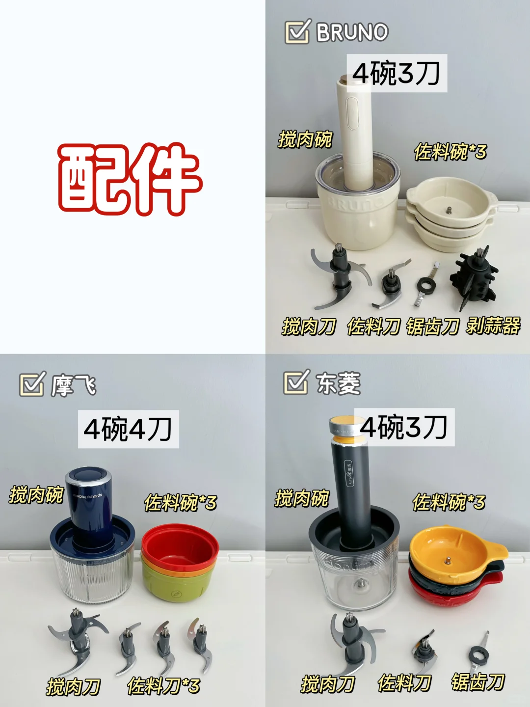 基本功能和BRUNO差不多的,配件少一个剥蒜器,像搅肉泥,打湿料、干料啥的也都还算不错