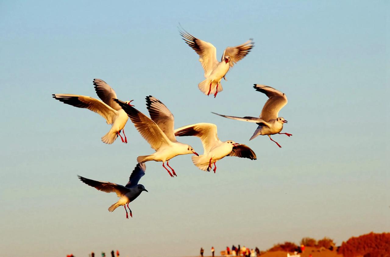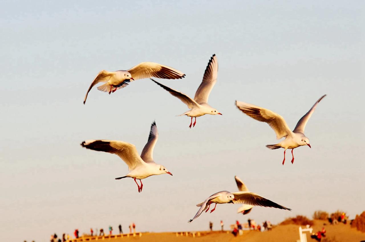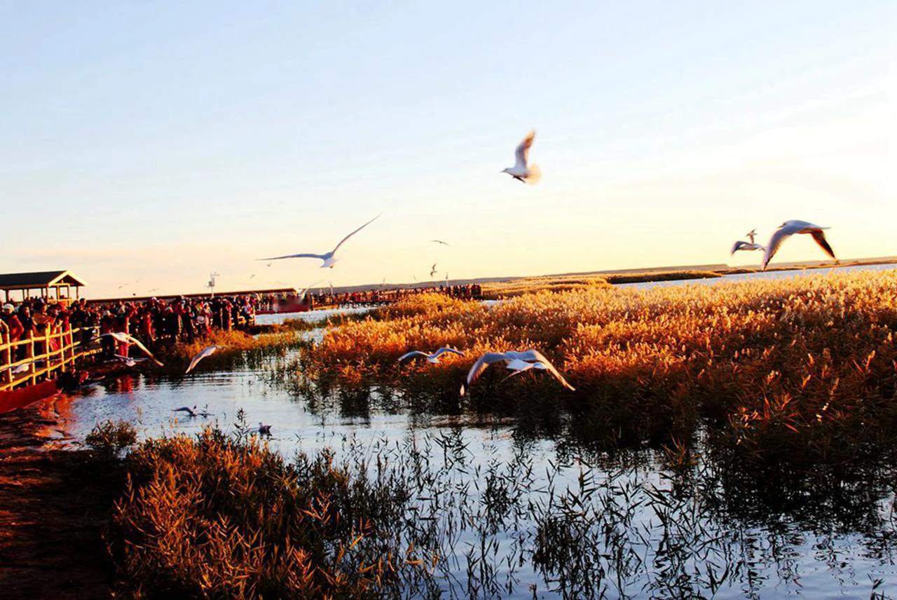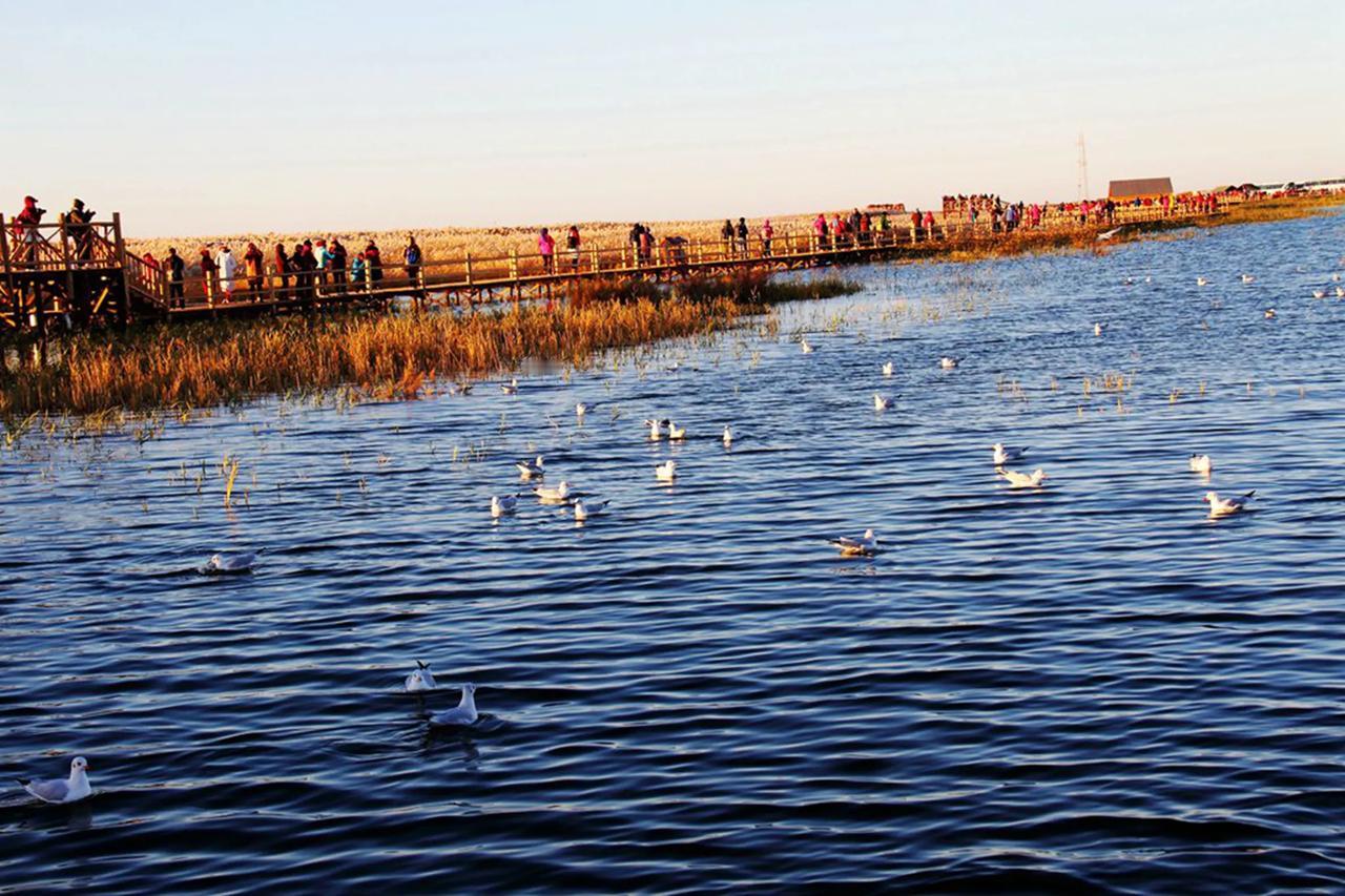 #秋日生活打卡季# #一张图片证明你来过内蒙# 【居延海看日出】20241110 参团到额济纳看胡杨,行程安排有到居延海看日出,然后去参观策克口岸,似乎很美好,其实是一个大坑。 2018年额济纳之行,10月11日,居延海拍日出。3:30就起床,5点出发,黑暗中赶到居延海,已经是人山人海。好不容易导游买到票。原本买了摆渡车票,奈何车少人多,只好跌跌撞撞摸黑往里赶,想要占个制高点拍日出。路远心慌,气喘腿软,个中滋味太舒爽。走到半路,赶紧爬上个沙堆,占个机位。只见前后左右的沙堆上,观赏台,沙坡上,海边栈桥上,都挤满了人。风大很冷,真有点受不了。冻了半个多小时,7:15,太阳出来了。天边无云,一个火球跃起空中,顿时光芒万丈,无遮无挡,白光刺眼。没有云彩,非常单调。也就几分钟时间,所谓日出美景,就完事大吉。好在还是拍了几张红彤彤的大火球,滥竽充数。还有霞光中人影和芦苇丛,光影之下,还算绚丽。 走下沙堆,赶往二号码头。风景不错,芦苇晶亮,海鸥飞翔,鸣叫抢食,沐浴在霞光中,非常漂亮。本可以在栈桥上拍点照片,奈何人太多,真怕会被挤到水里去。时间也不够,规定8:30集合。只能随随便便拍几张,急急忙忙出景区。又在车海中找车,太艰难了。等到人到齐了,已经是9点过了。到了策克口岸,居然又是长时间排队等候。也没啥可看的,就是拍个界碑。这安排实在欠妥。假如不忙着去策克口岸,看了日出之后,再用一小时在海边玩玩,拍拍海鸥,就要有意思得多。下午再去策克口岸,人都没有了,也不用排队,多好!当然,要是自驾去,那就更好了。只是千万要避开胡杨林这个时间段,游客太多了! #晒出你眼中最美的秋景#