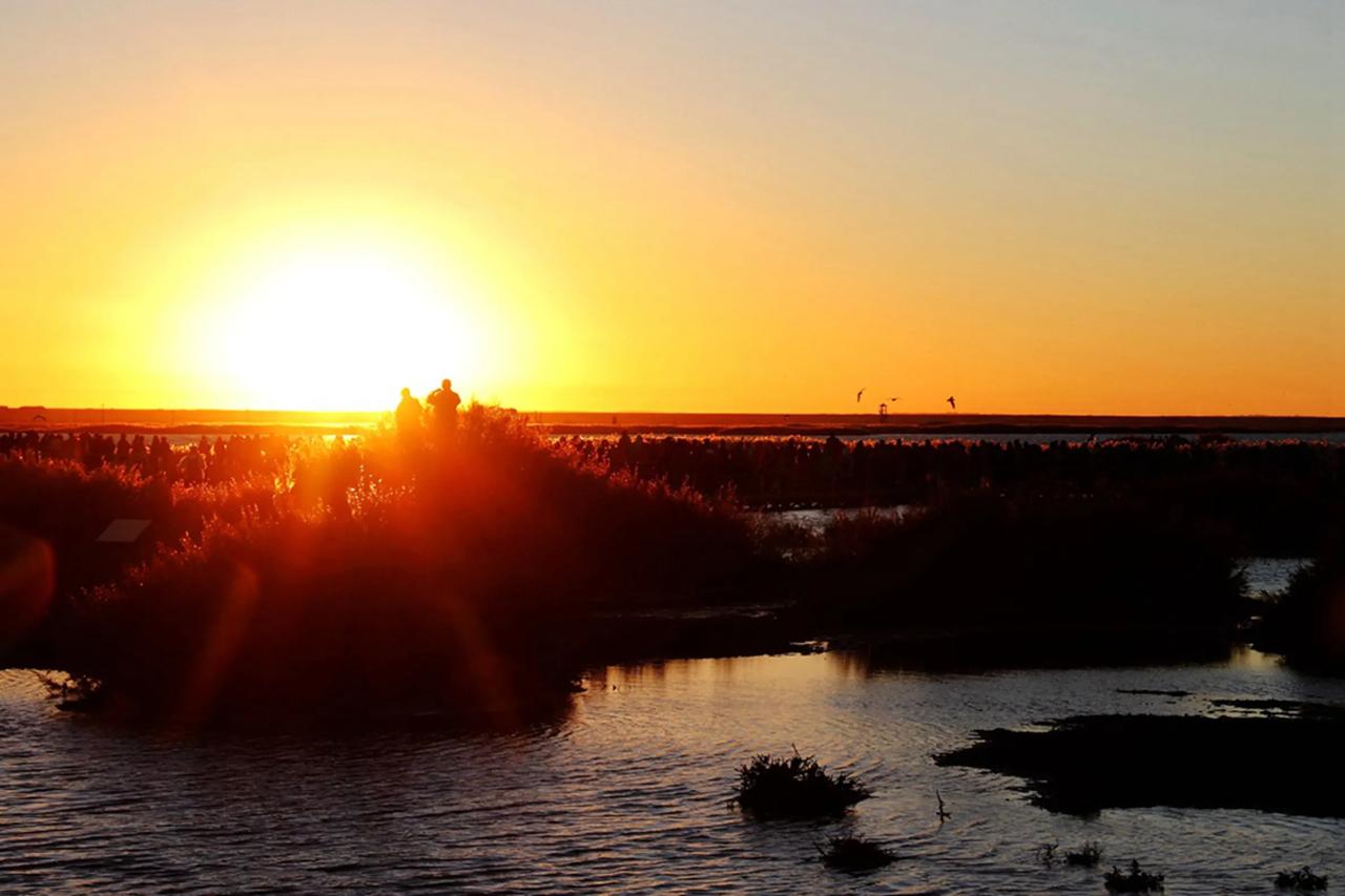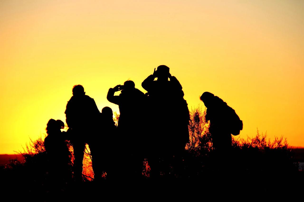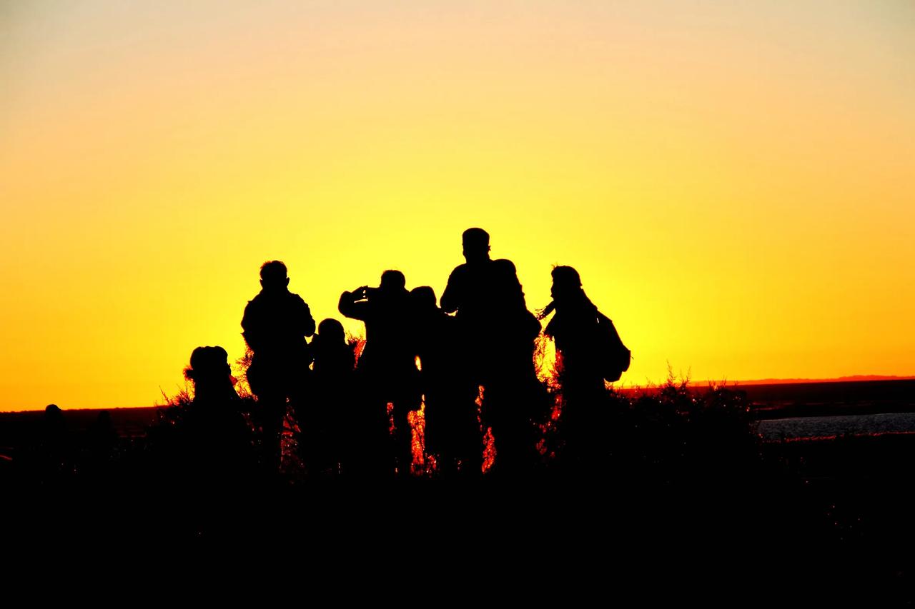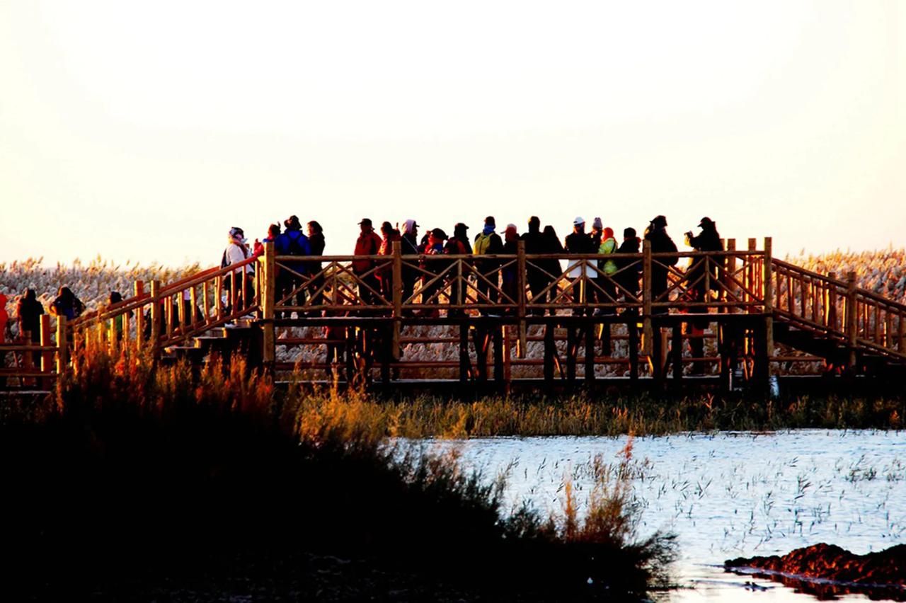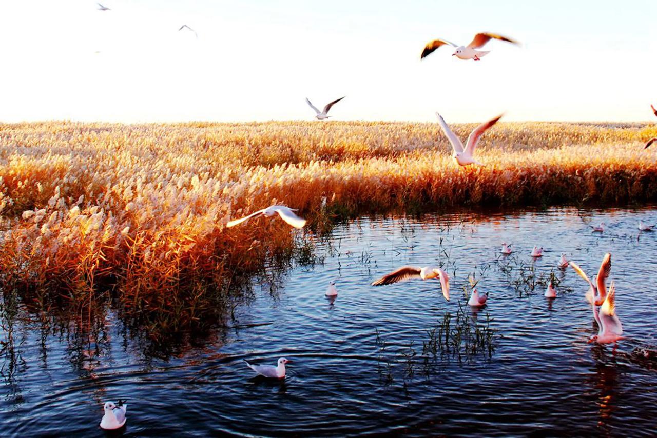 #秋日生活打卡季# #一张图片证明你来过内蒙# 【居延海看日出】20241110 参团到额济纳看胡杨,行程安排有到居延海看日出,然后去参观策克口岸,似乎很美好,其实是一个大坑。 2018年额济纳之行,10月11日,居延海拍日出。3:30就起床,5点出发,黑暗中赶到居延海,已经是人山人海。好不容易导游买到票。原本买了摆渡车票,奈何车少人多,只好跌跌撞撞摸黑往里赶,想要占个制高点拍日出。路远心慌,气喘腿软,个中滋味太舒爽。走到半路,赶紧爬上个沙堆,占个机位。只见前后左右的沙堆上,观赏台,沙坡上,海边栈桥上,都挤满了人。风大很冷,真有点受不了。冻了半个多小时,7:15,太阳出来了。天边无云,一个火球跃起空中,顿时光芒万丈,无遮无挡,白光刺眼。没有云彩,非常单调。也就几分钟时间,所谓日出美景,就完事大吉。好在还是拍了几张红彤彤的大火球,滥竽充数。还有霞光中人影和芦苇丛,光影之下,还算绚丽。 走下沙堆,赶往二号码头。风景不错,芦苇晶亮,海鸥飞翔,鸣叫抢食,沐浴在霞光中,非常漂亮。本可以在栈桥上拍点照片,奈何人太多,真怕会被挤到水里去。时间也不够,规定8:30集合。只能随随便便拍几张,急急忙忙出景区。又在车海中找车,太艰难了。等到人到齐了,已经是9点过了。到了策克口岸,居然又是长时间排队等候。也没啥可看的,就是拍个界碑。这安排实在欠妥。假如不忙着去策克口岸,看了日出之后,再用一小时在海边玩玩,拍拍海鸥,就要有意思得多。下午再去策克口岸,人都没有了,也不用排队,多好!当然,要是自驾去,那就更好了。只是千万要避开胡杨林这个时间段,游客太多了! #晒出你眼中最美的秋景#