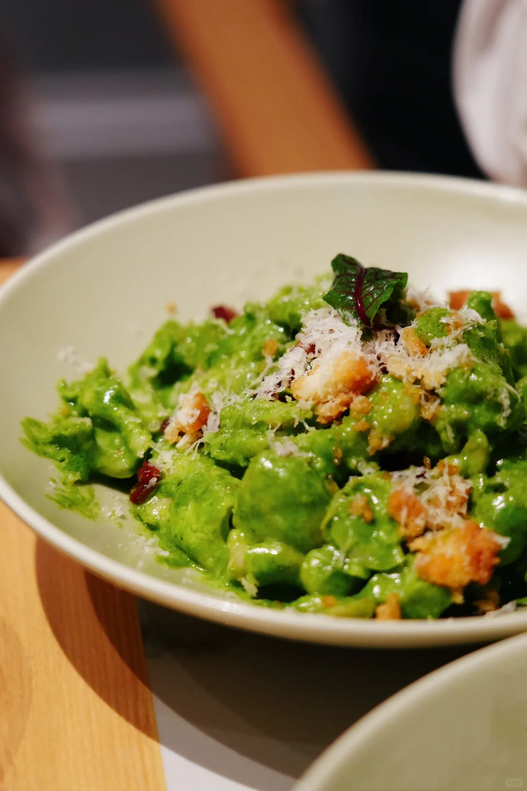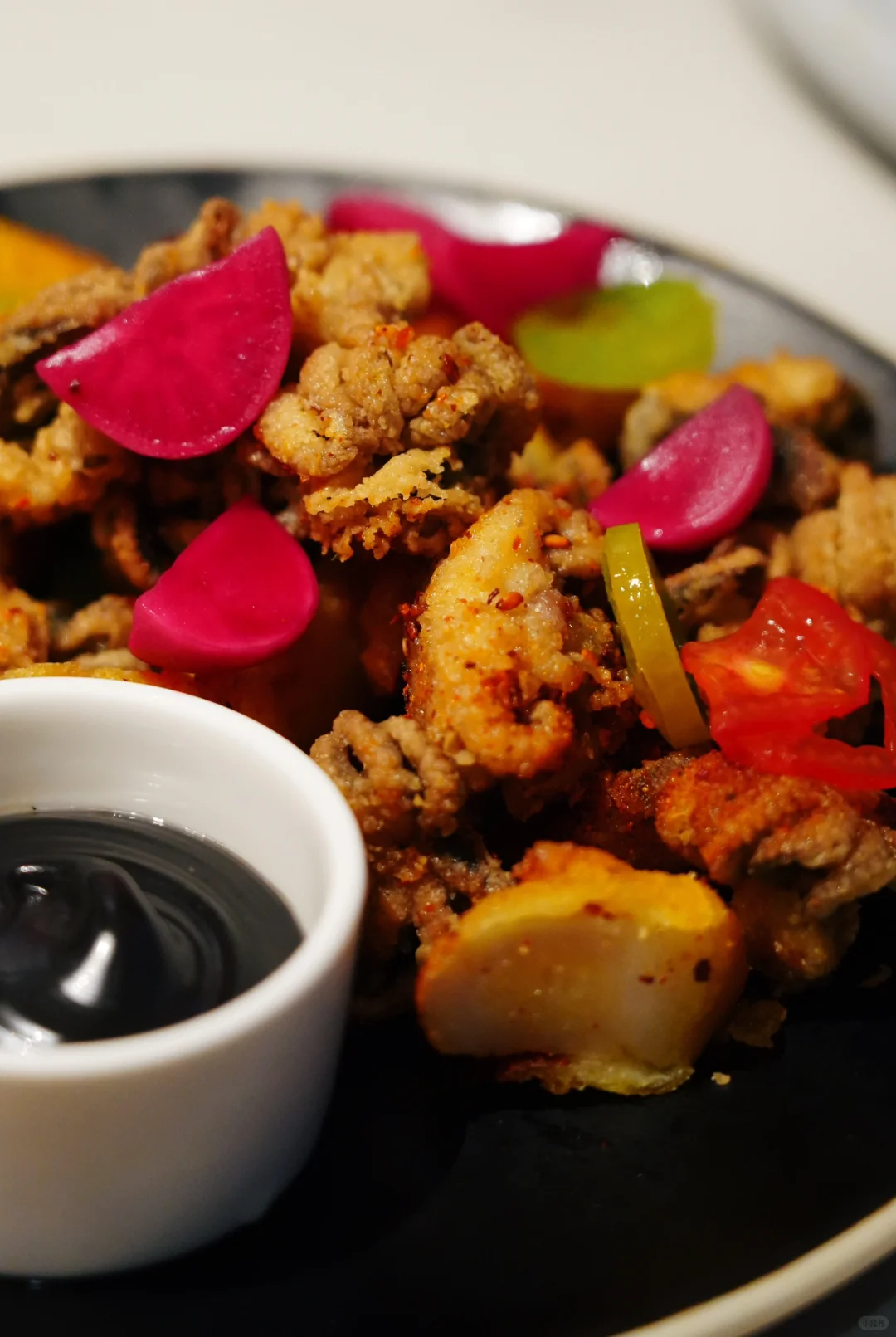 最近吃了几次还都挺爱,秋季上了很多柿子,我没那么爱,但朋友们的反响还不错。炸鱿鱼以前不点,今天发现还挺好吃,配了类似咸鲜口的美乃滋酱,不知道具体称呼,但确实挺好吃的。一直很爱罗勒蛙腿,浓郁的罗勒奶油参杂花椒的麻,里面还有秀球菌,超好吃。