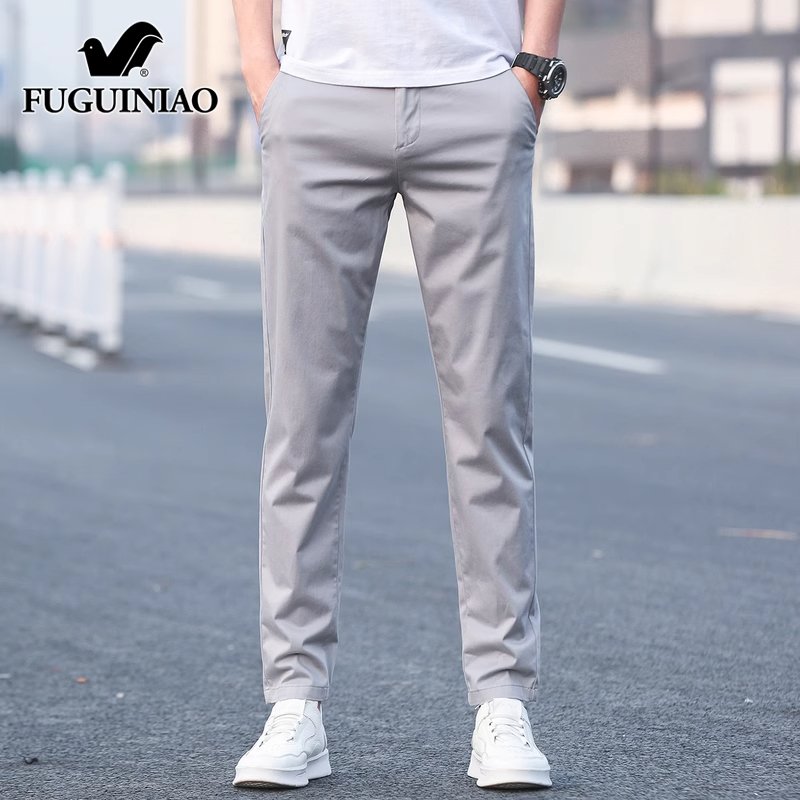 富贵鸟休闲长裤男士卡其色修身小脚西裤新款高端裤子男春秋季