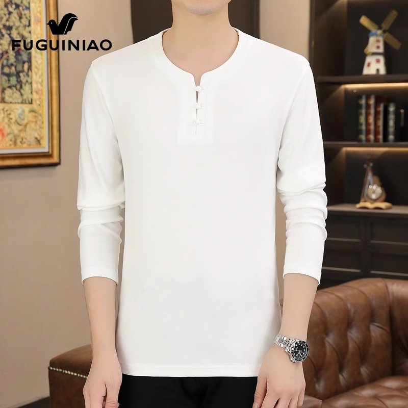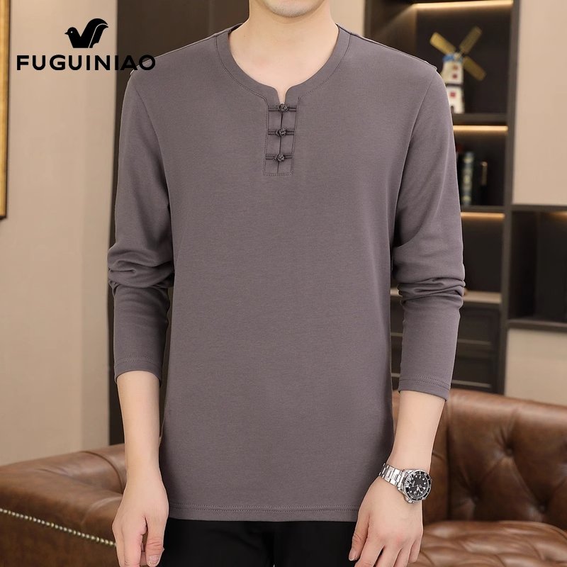 富贵鸟男士长袖t恤中国风上衣秋冬季加绒休闲纯棉体恤卫衣男