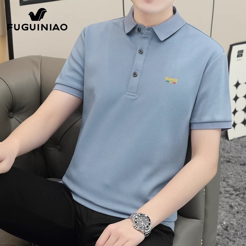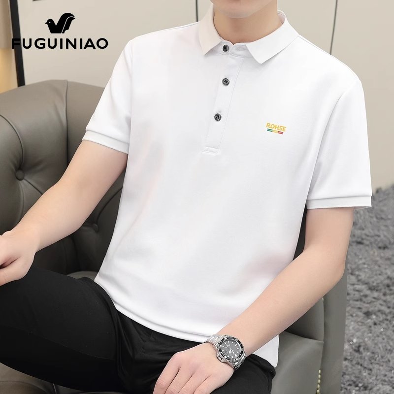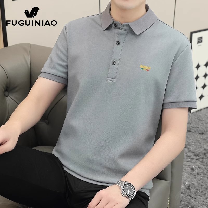 富贵鸟桑蚕丝Polo衫男士半袖上衣服夏季新薄款休闲短袖t恤男