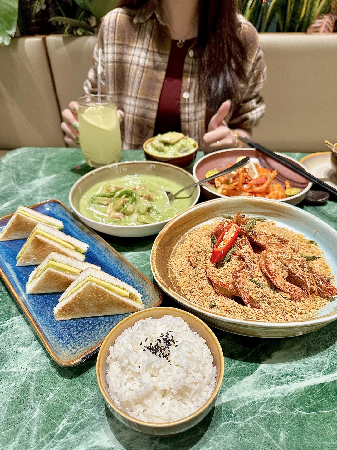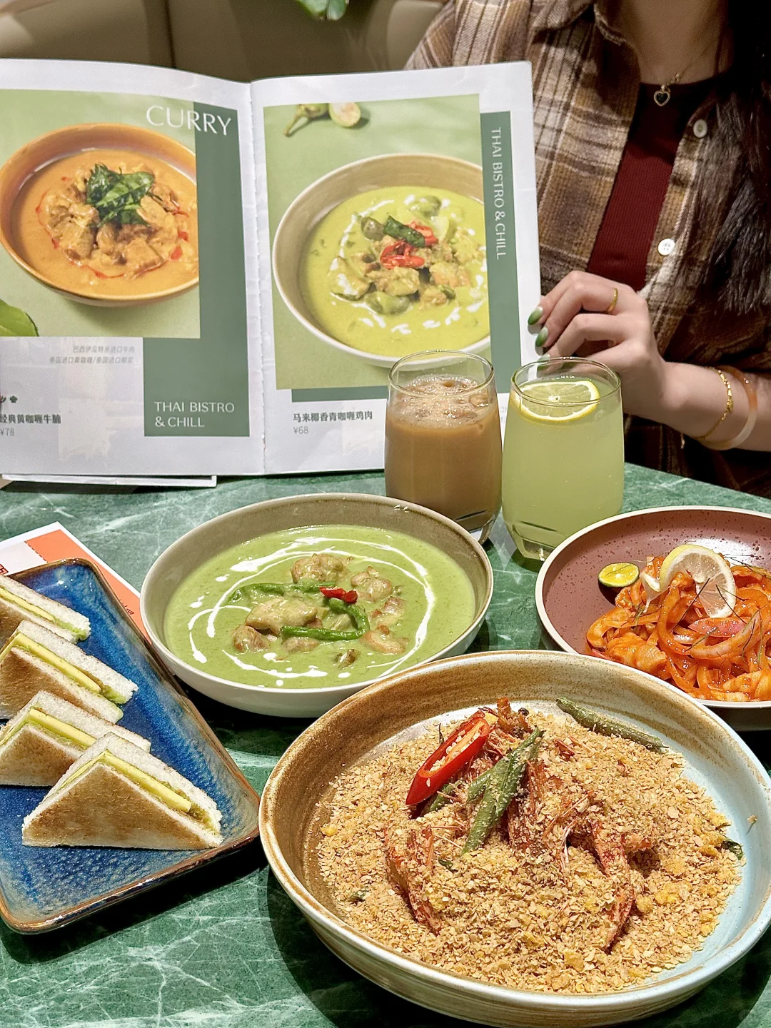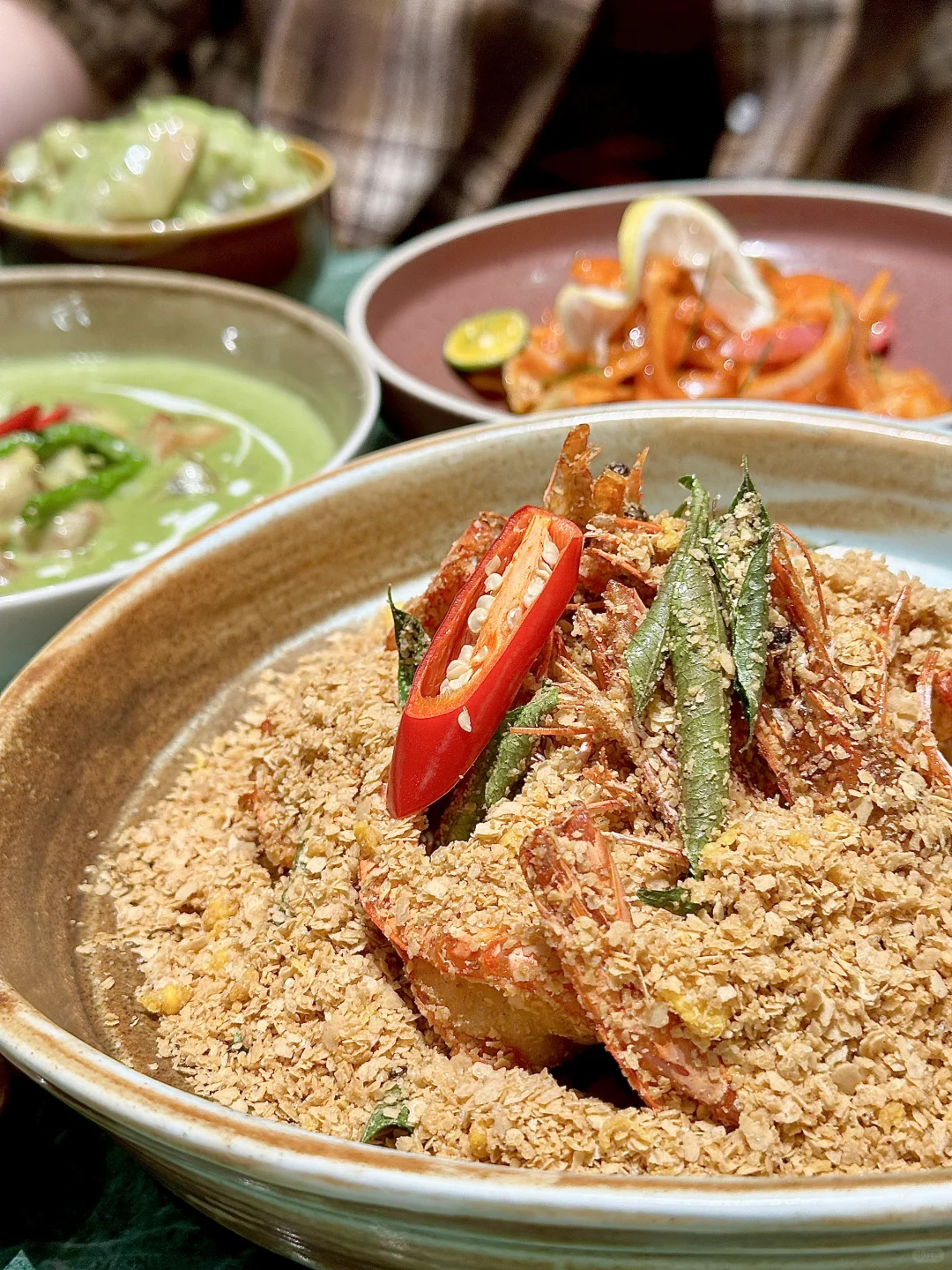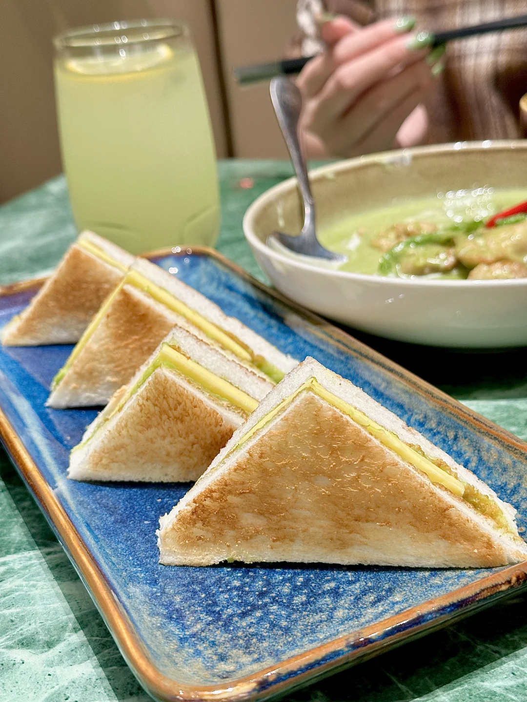 特房的姐妹又一起约吃晚餐,好开心🥰 买的双人套餐很实惠🉑 看着落日吃晚餐,真的很浪漫 🌷新加坡风情麦片虾 虾肉新鲜弹牙,麦片奶香十足,越吃越上头 🌷酸辣脱骨鸡爪酸辣入味,分量也足 🌷椰香青咖喱鸡肉 很特别,入口微微的辣,但是很浓郁 🌷咖椰吐司 一口惊艳,外酥里软,黄油入口即化,充斥着口腔鼻腔 餐厅的装修风格是我喜欢的,细节布置氛围很棒,吃完已经在约下次带长辈来了👍🏻👍🏻